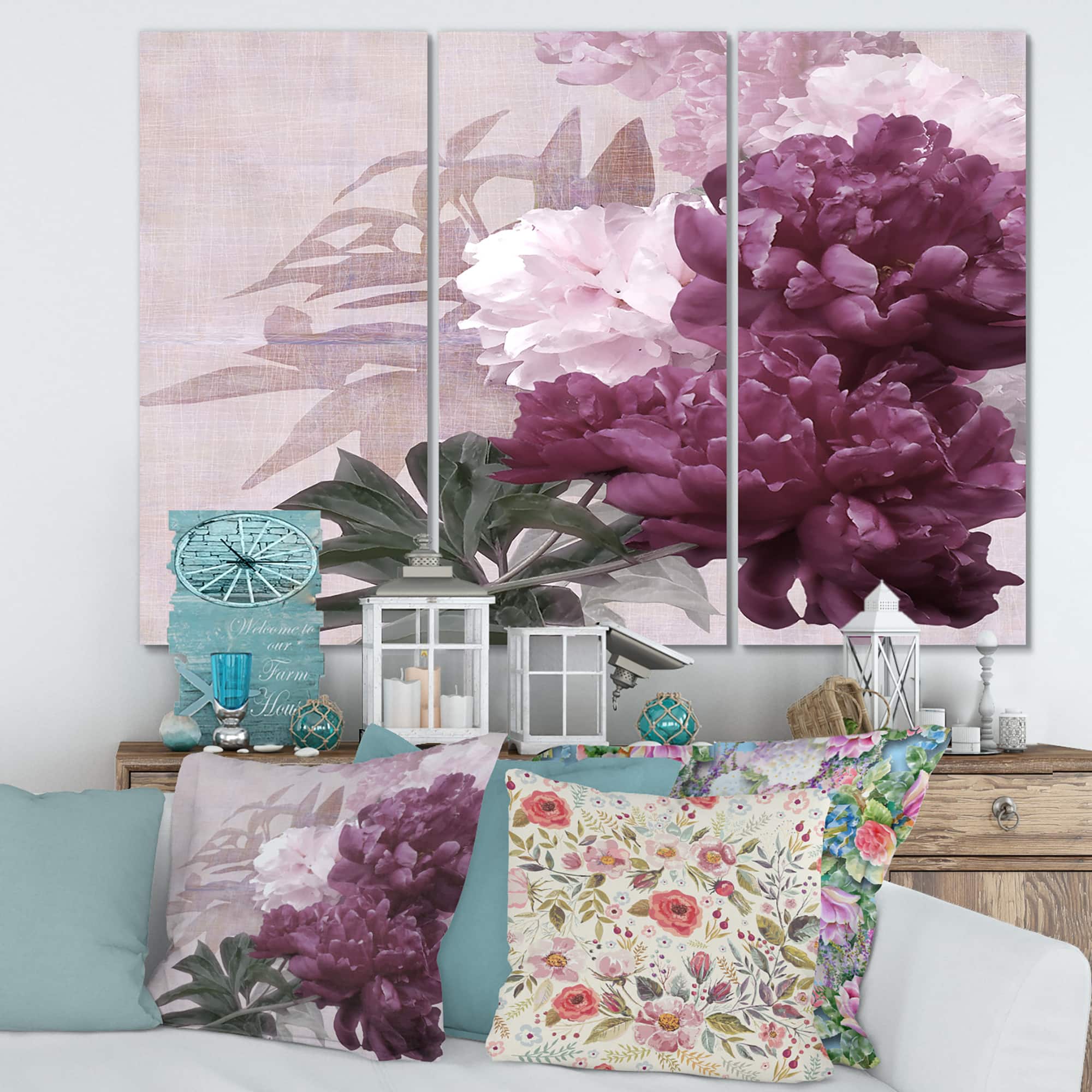 Designart - Vintage Purple and Pink Flowers I - Traditional Canvas Wall Art Print