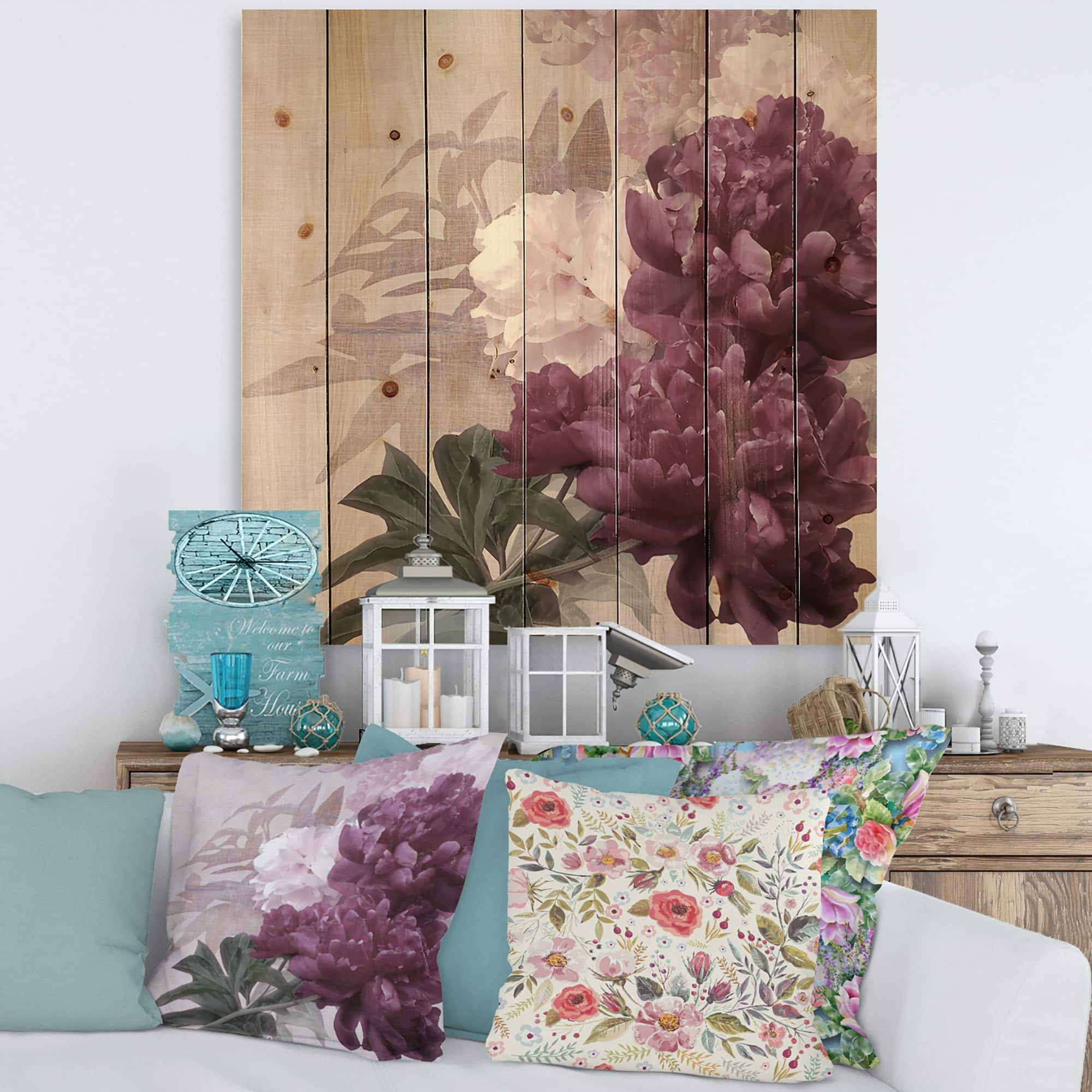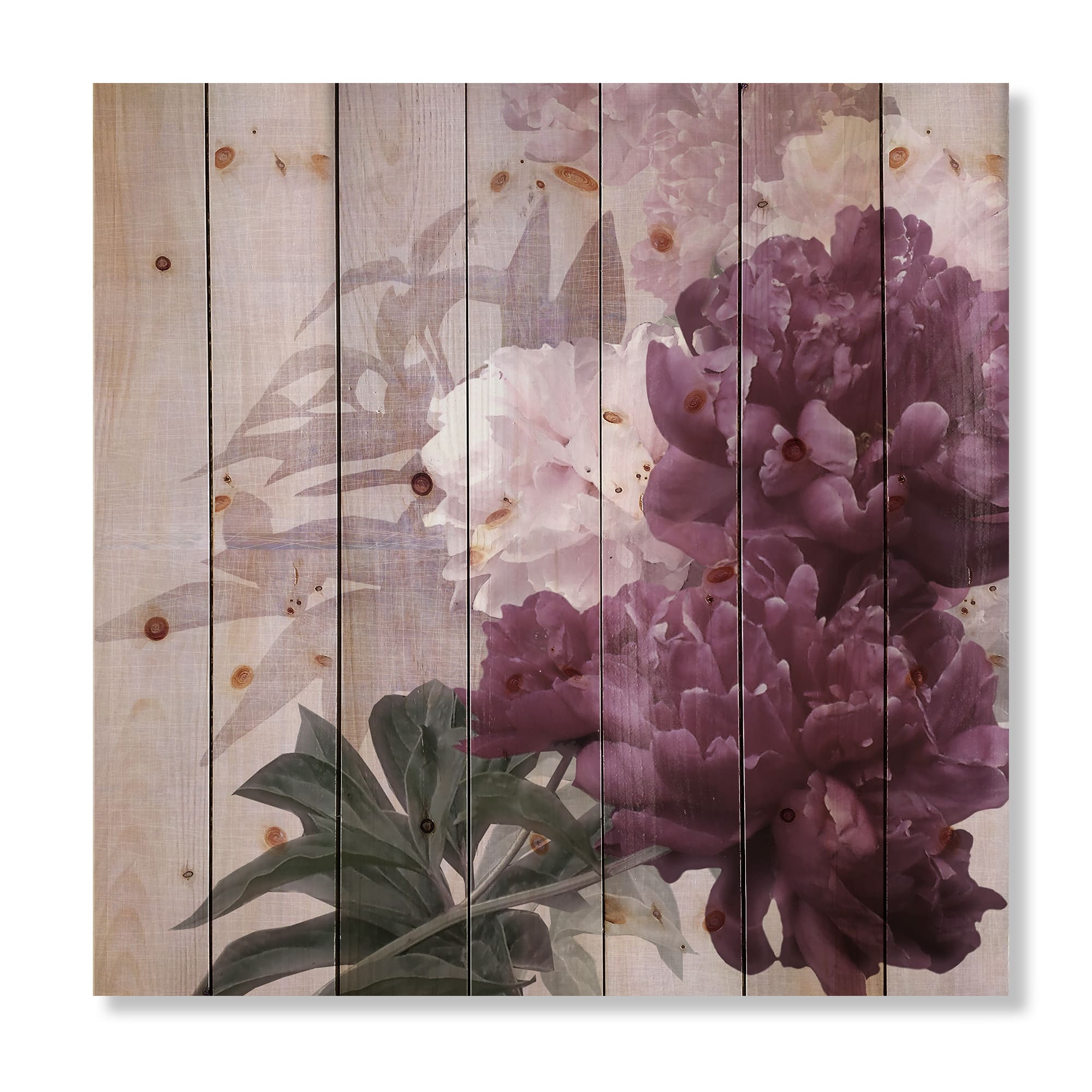 Designart - Vintage Purple and Pink Flowers I - Traditional Print on Natural Pine Wood