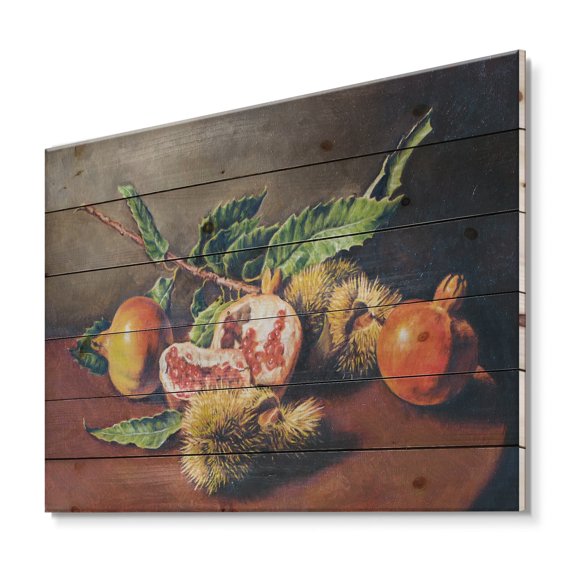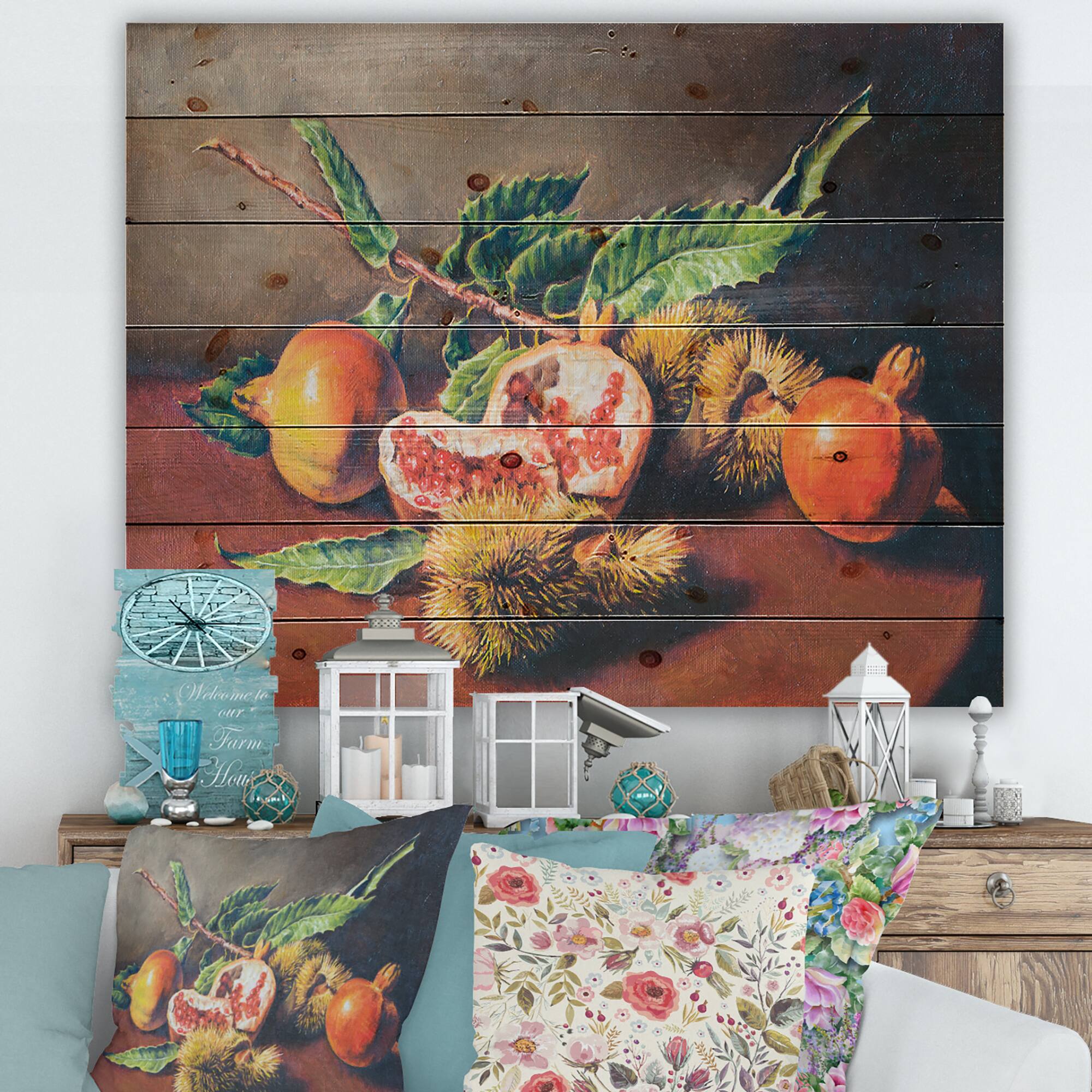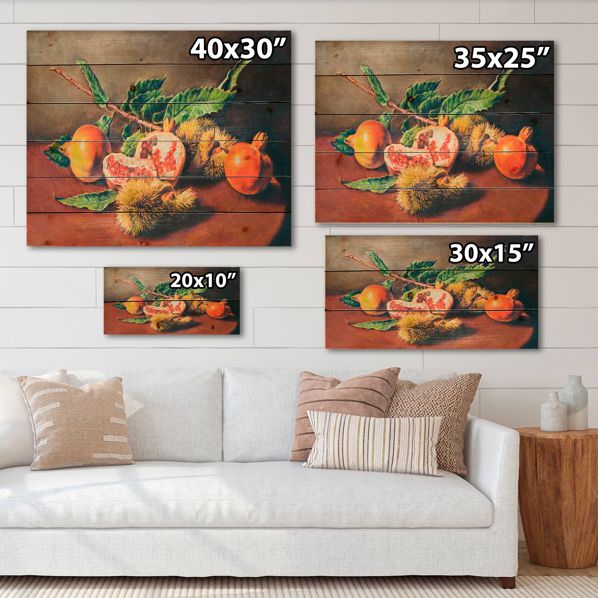 Designart - Vintage Still Life of Orange Fruits - Traditional Print on Natural Pine Wood