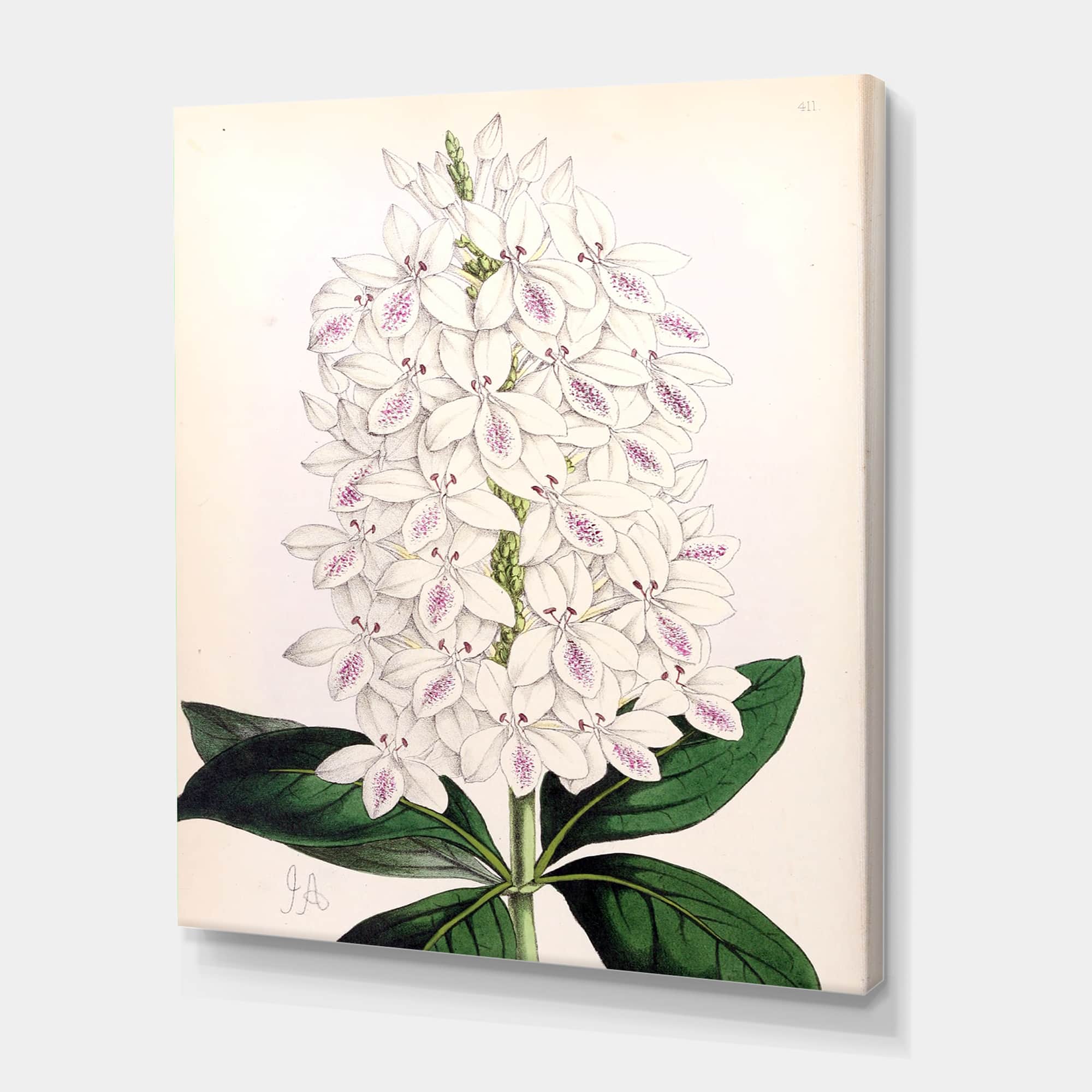Designart - Vintage White Orchid III - Traditional Canvas Wall Art Print