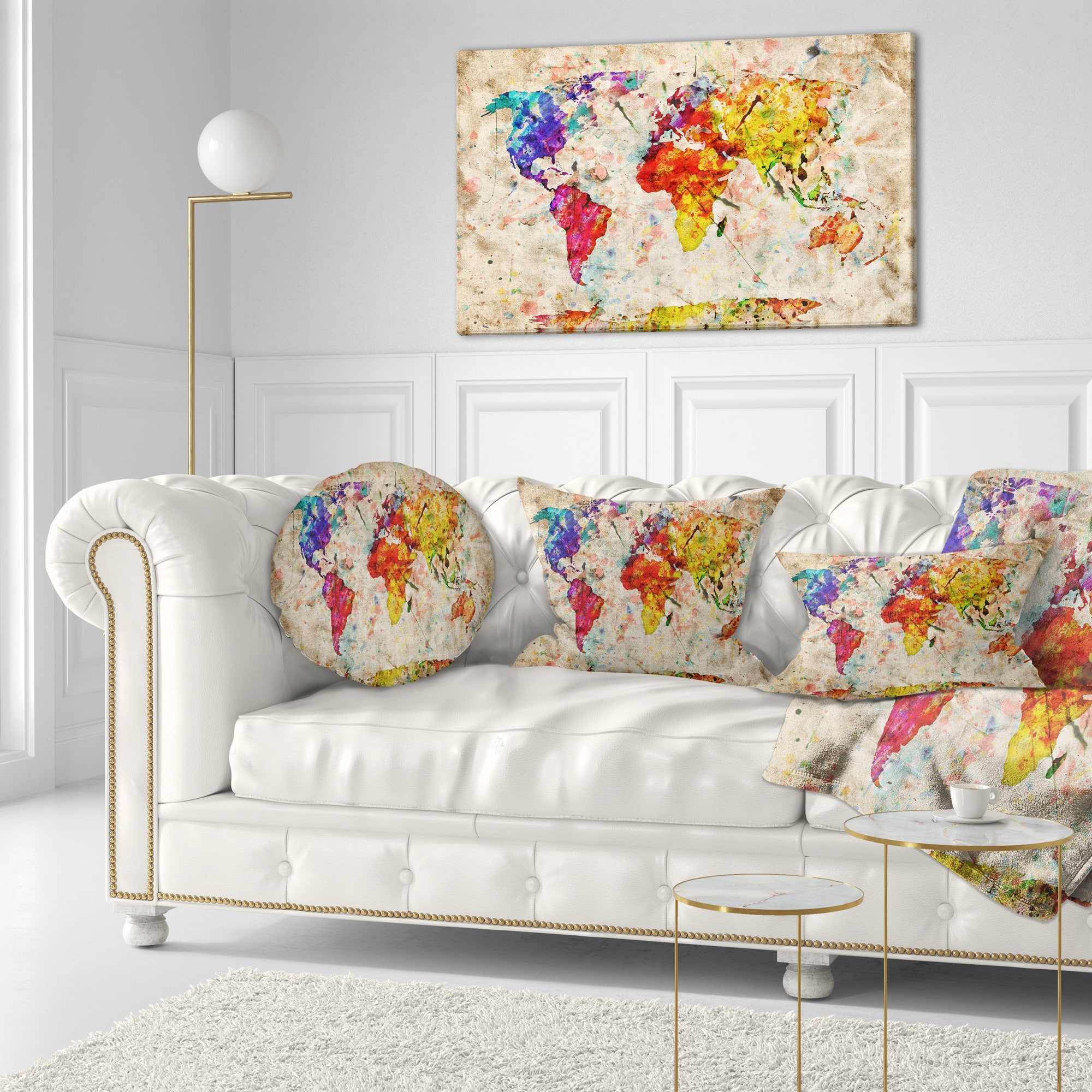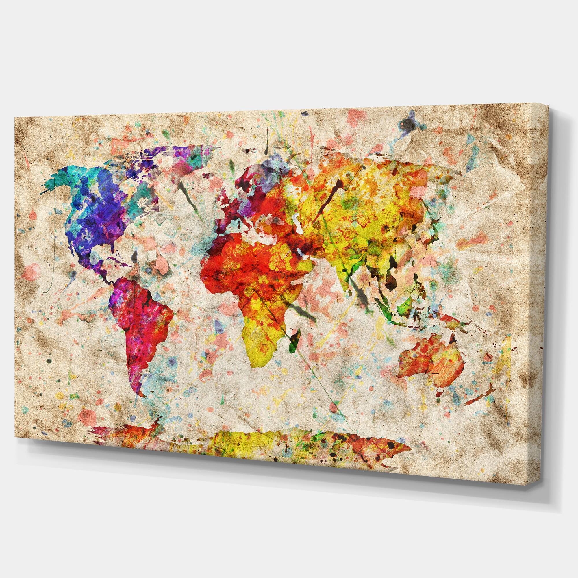 Designart - Vintage World Map Watercolor - Large Map Canvas Art Print