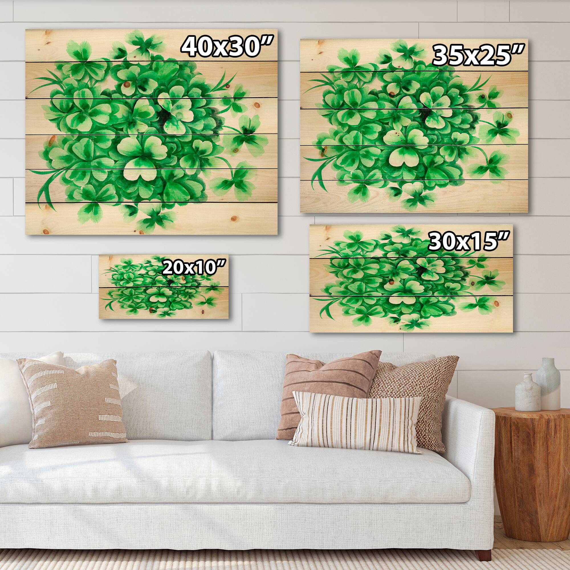 Designart - Vintagr Green Leaves of Shamrock - Traditional Print on Natural Pine Wood