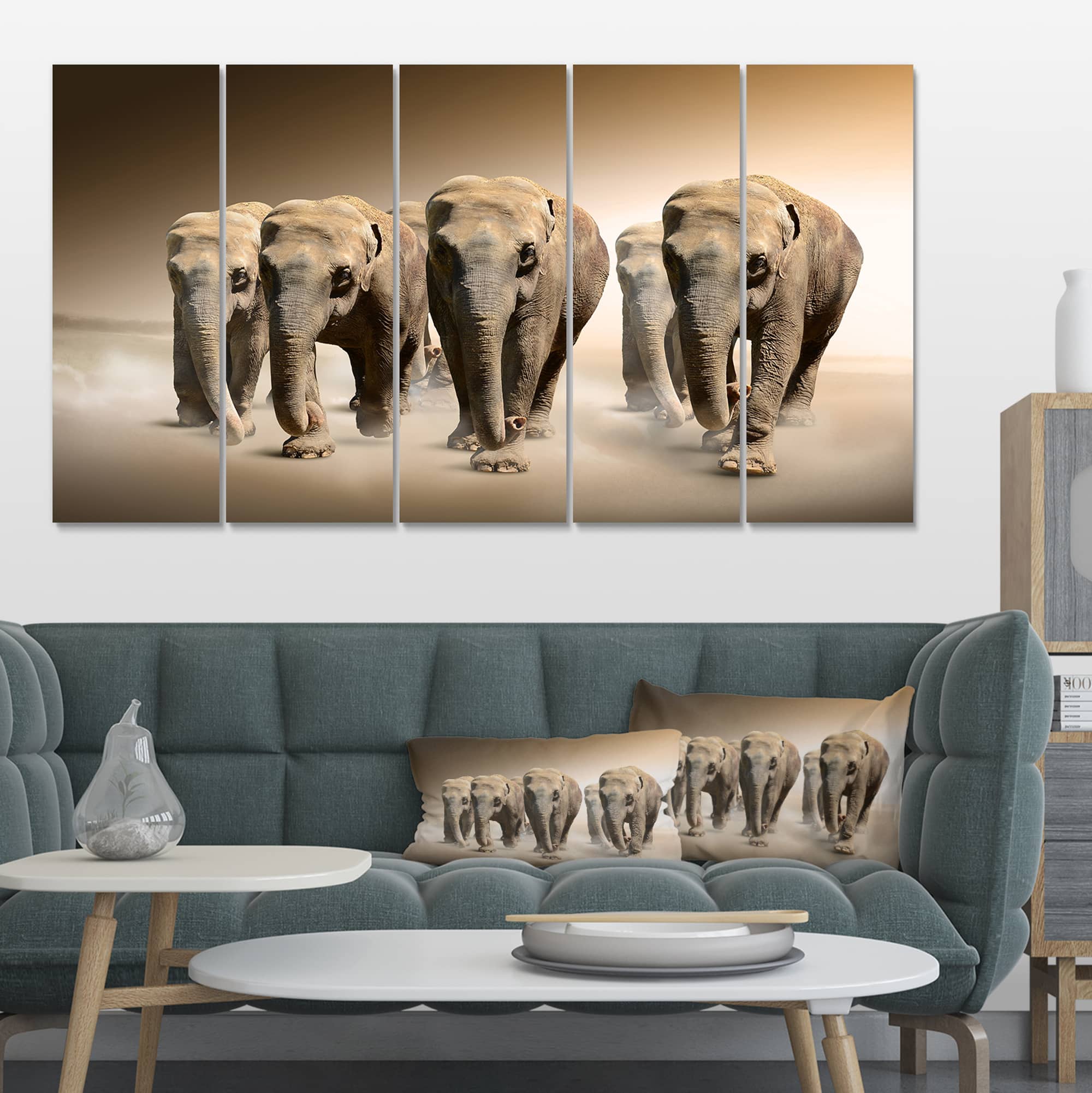 Designart - Walking Herd of Elephants - Animal Canvas Wall Art