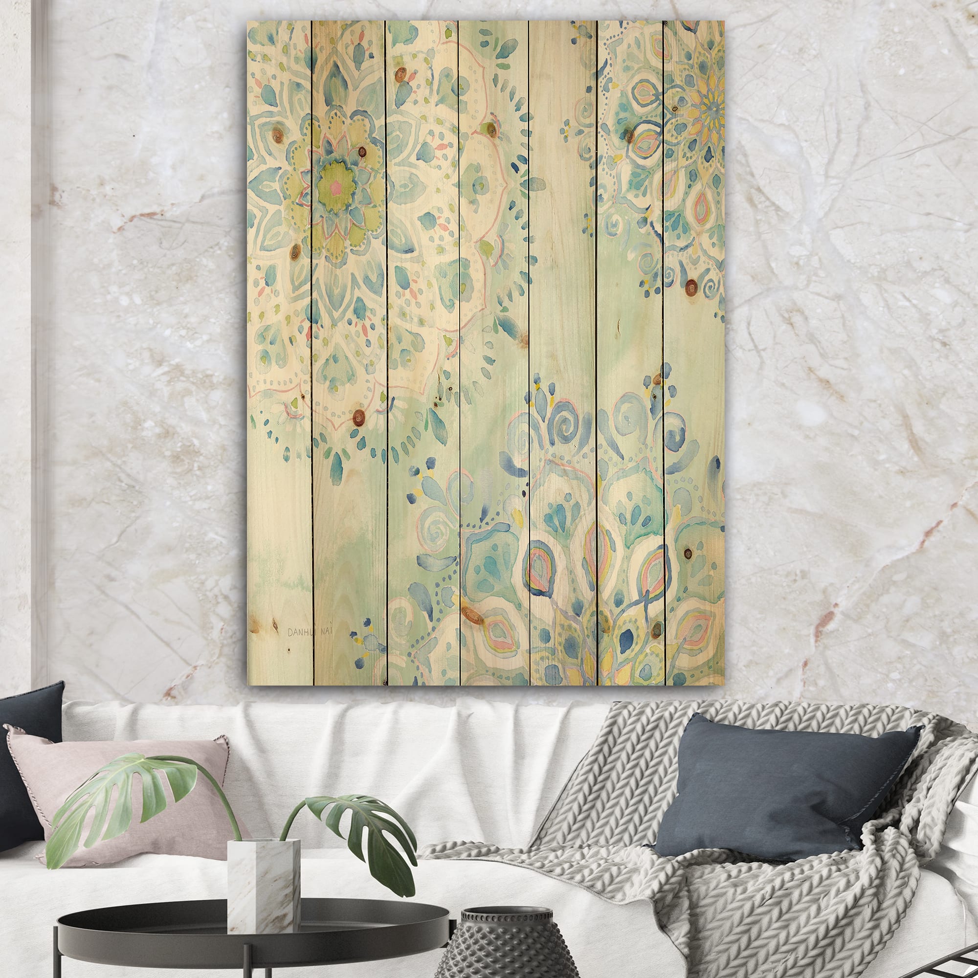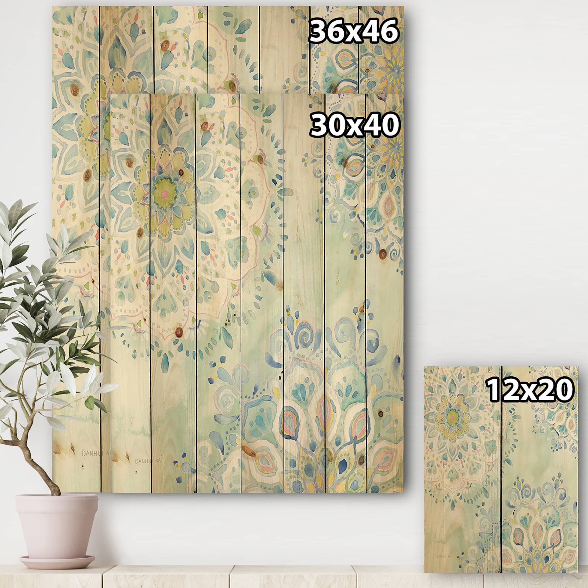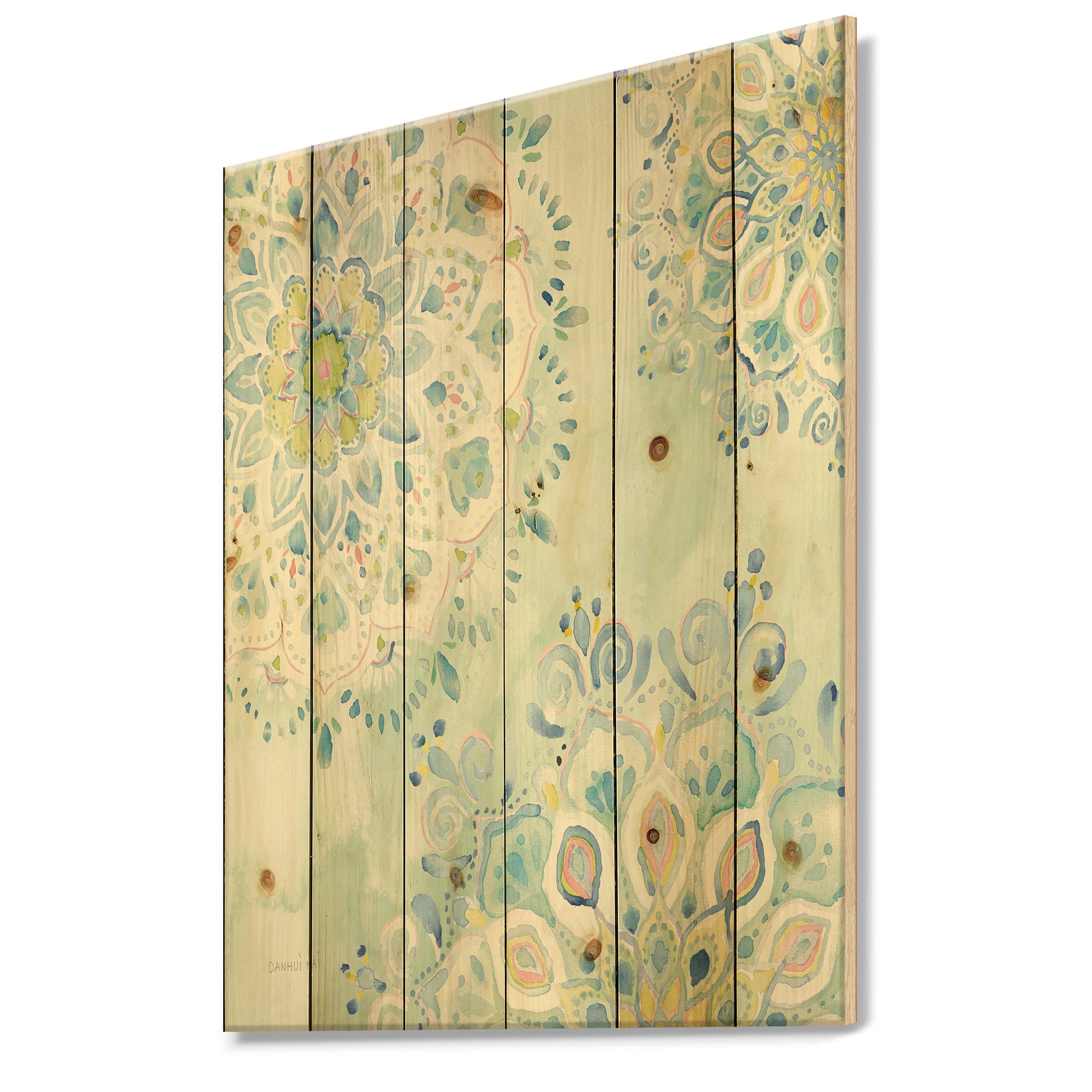 Designart - Watercolor mandalas III - Floral & Botanical Print on Natural Pine Wood