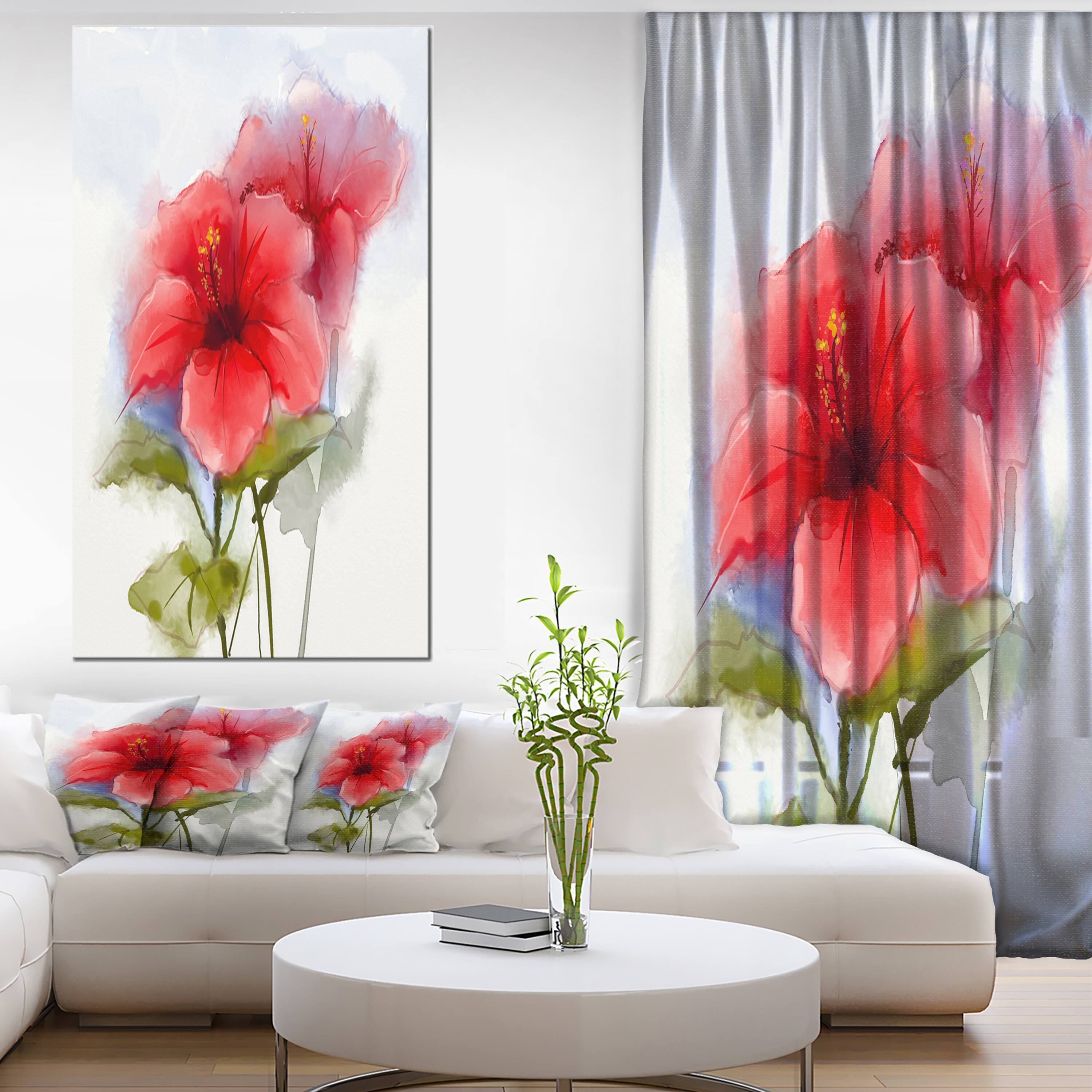 Designart - Watercolor Painting Red Hibiscus Flower - Large Floral Canvas Art Print
