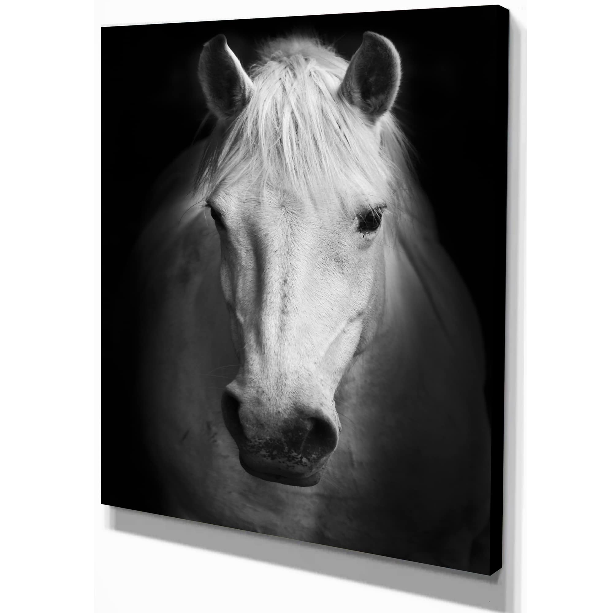 Designart - White Horse Black and White - Animal Canvas Art Print
