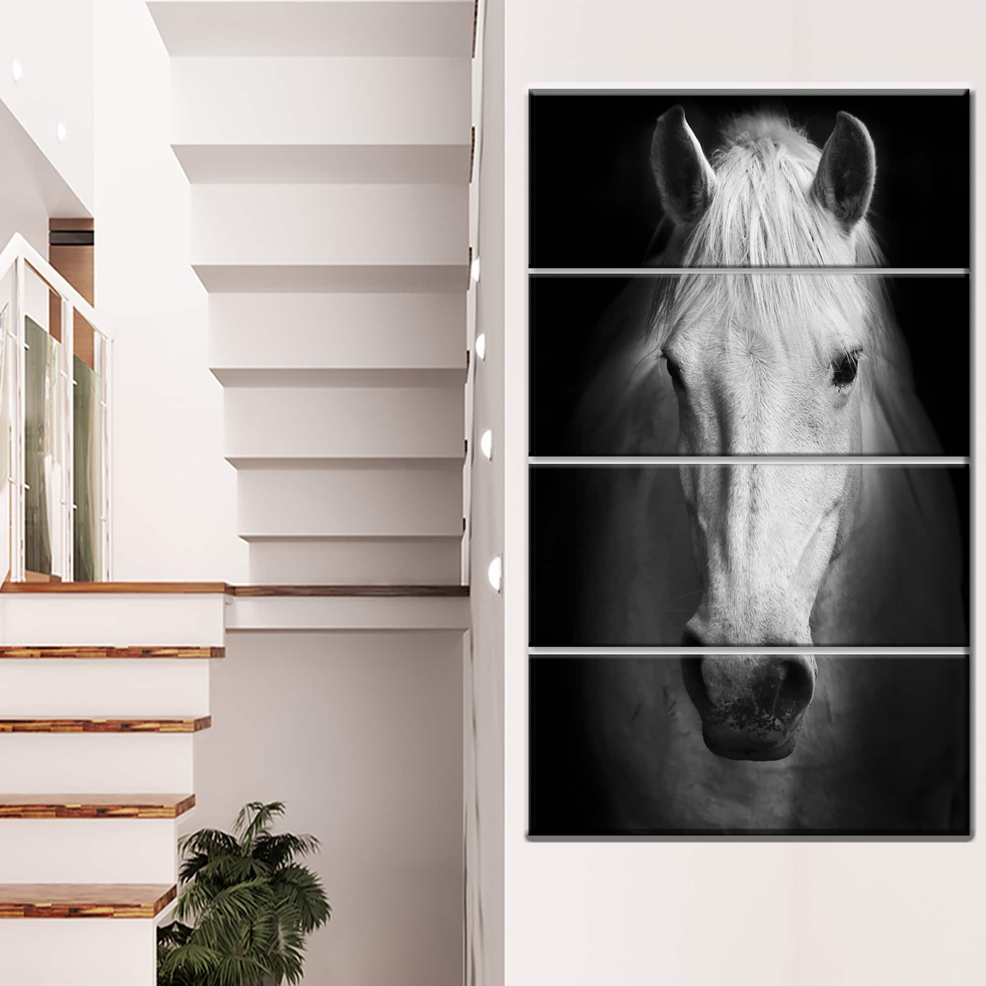 Designart - White Horse Black and White - Animal Canvas Art Print