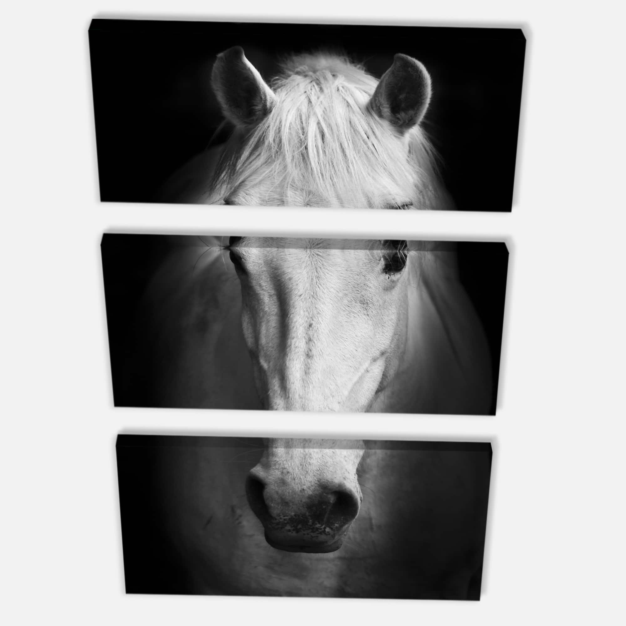 Designart - White Horse Black and White - Animal Canvas Art Print
