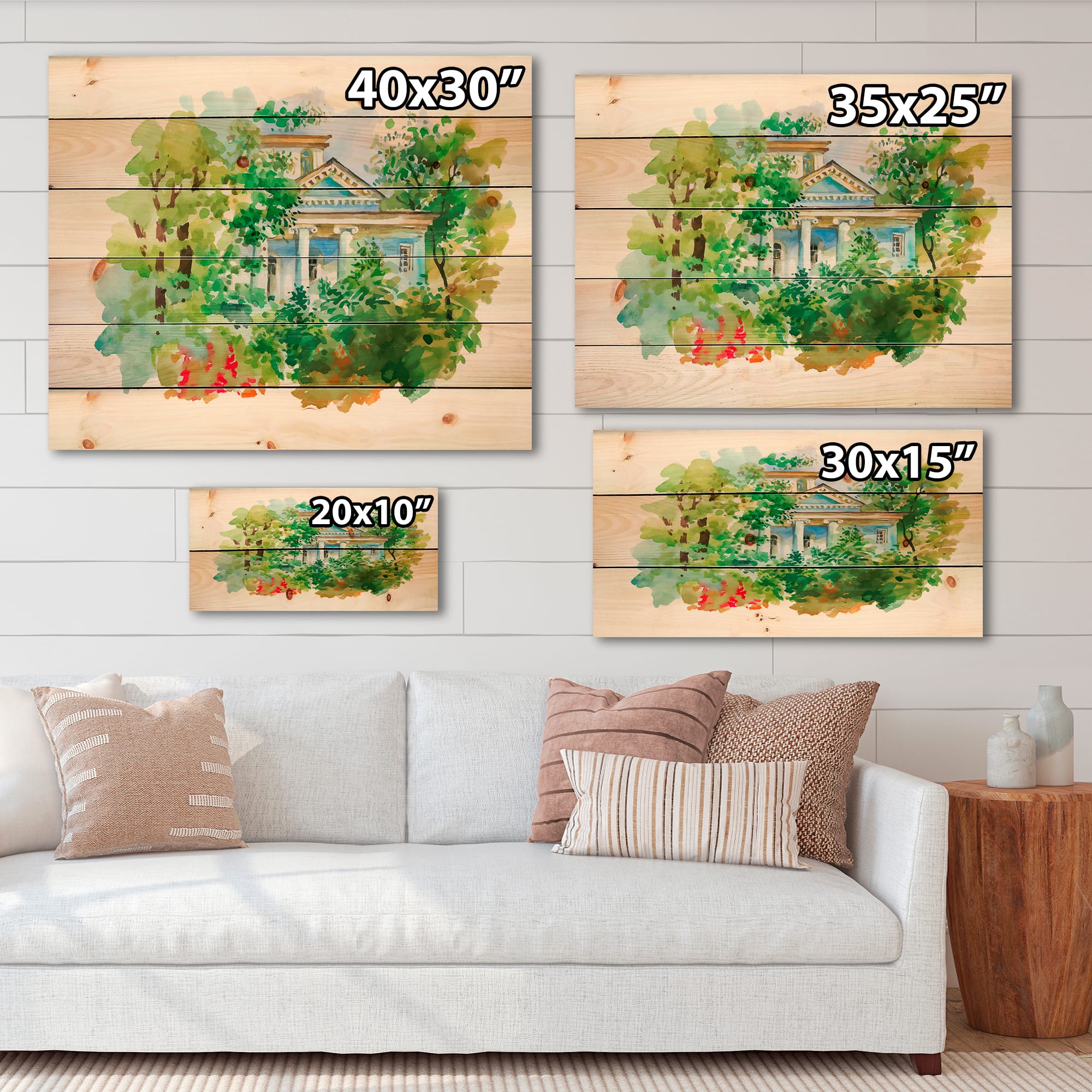 Designart - White House In The Woods - Traditional Print on Natural Pine Wood