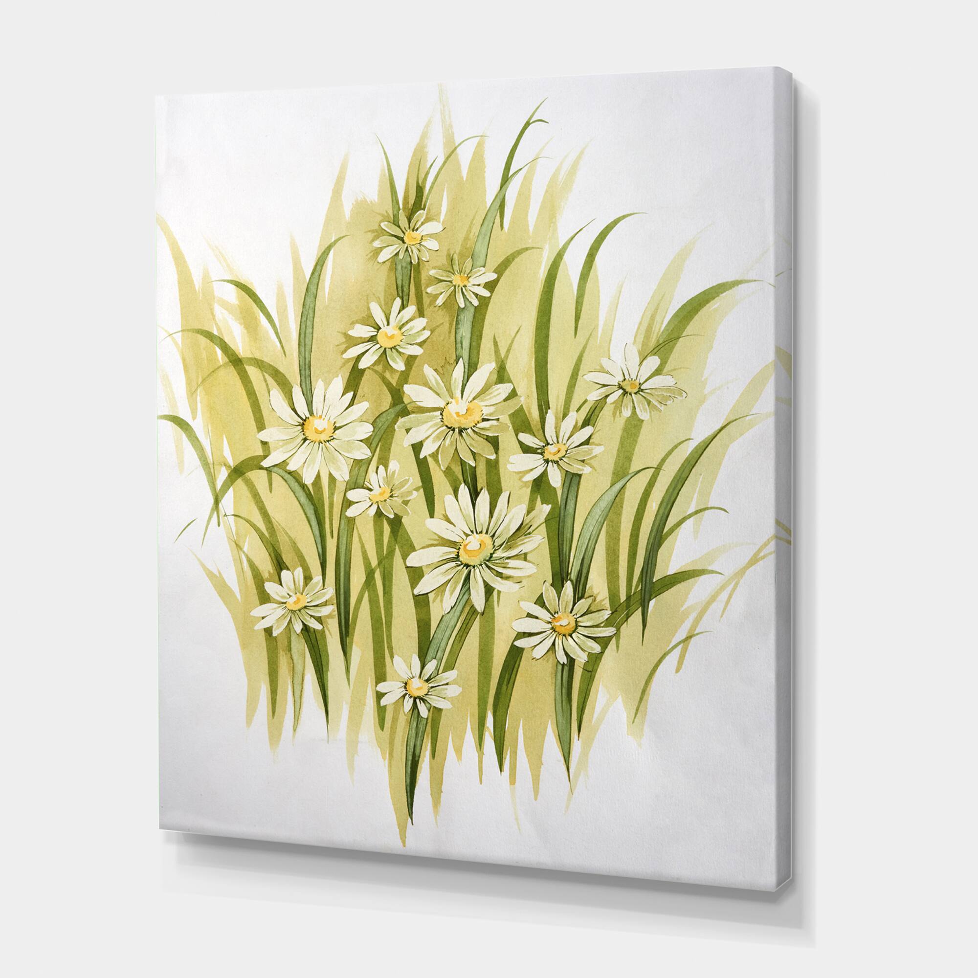 Designart - White Meadow Flowers - Traditional Canvas Wall Art Print