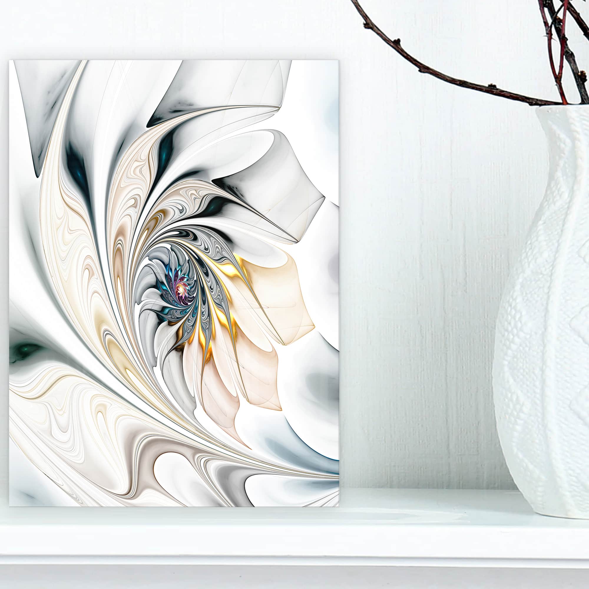 Designart - White Stained Glass Floral Art - Large Floral Wall Art Canvas