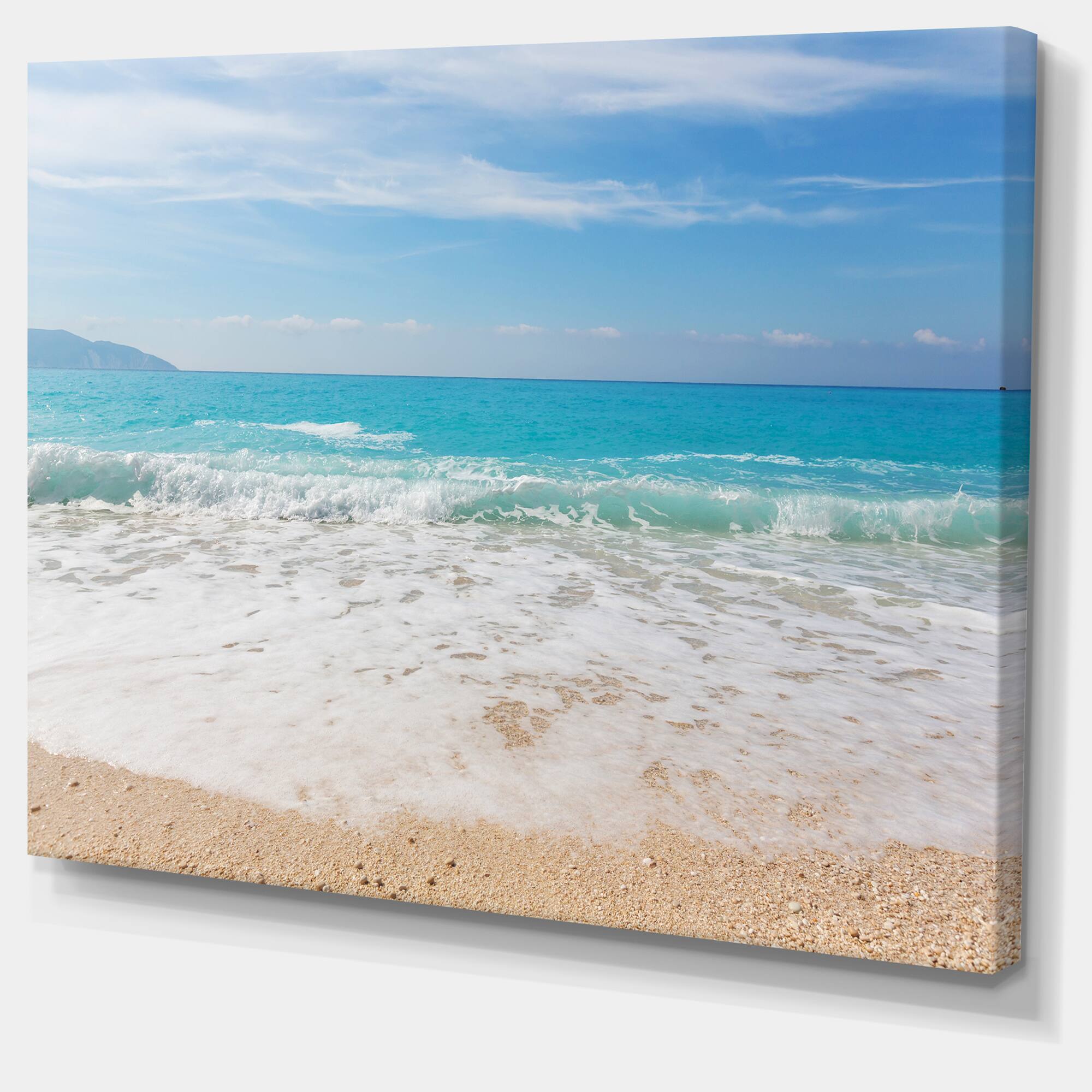 Designart - White Waves Kissing Beach Sand - Large Seashore Canvas Print