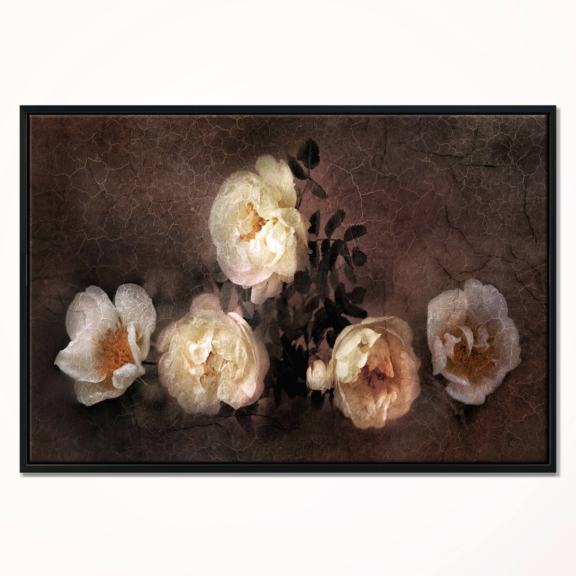 Designart - Wild Roses in Old Painting Style - Floral Art Canvas Print in Black Frame