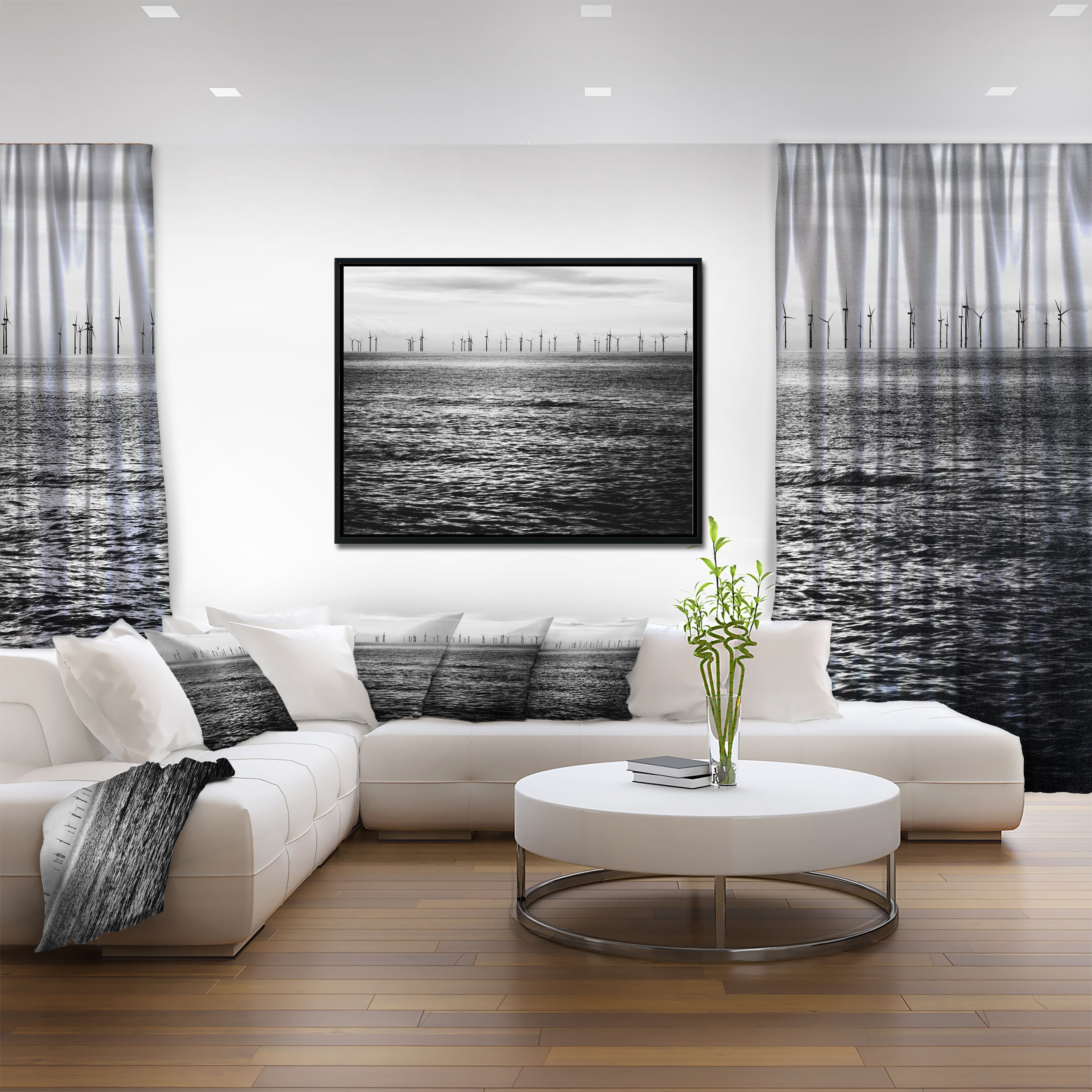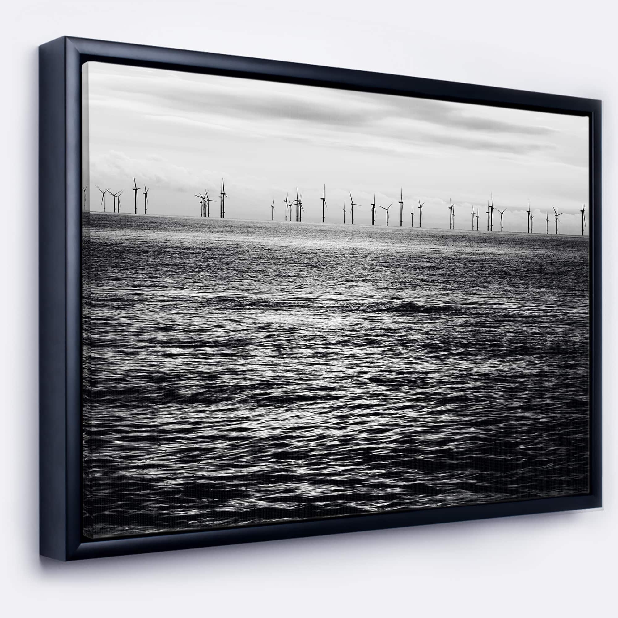 Designart - Wind Turbines Black and White - Landscape Artwork Canvas in Black Frame