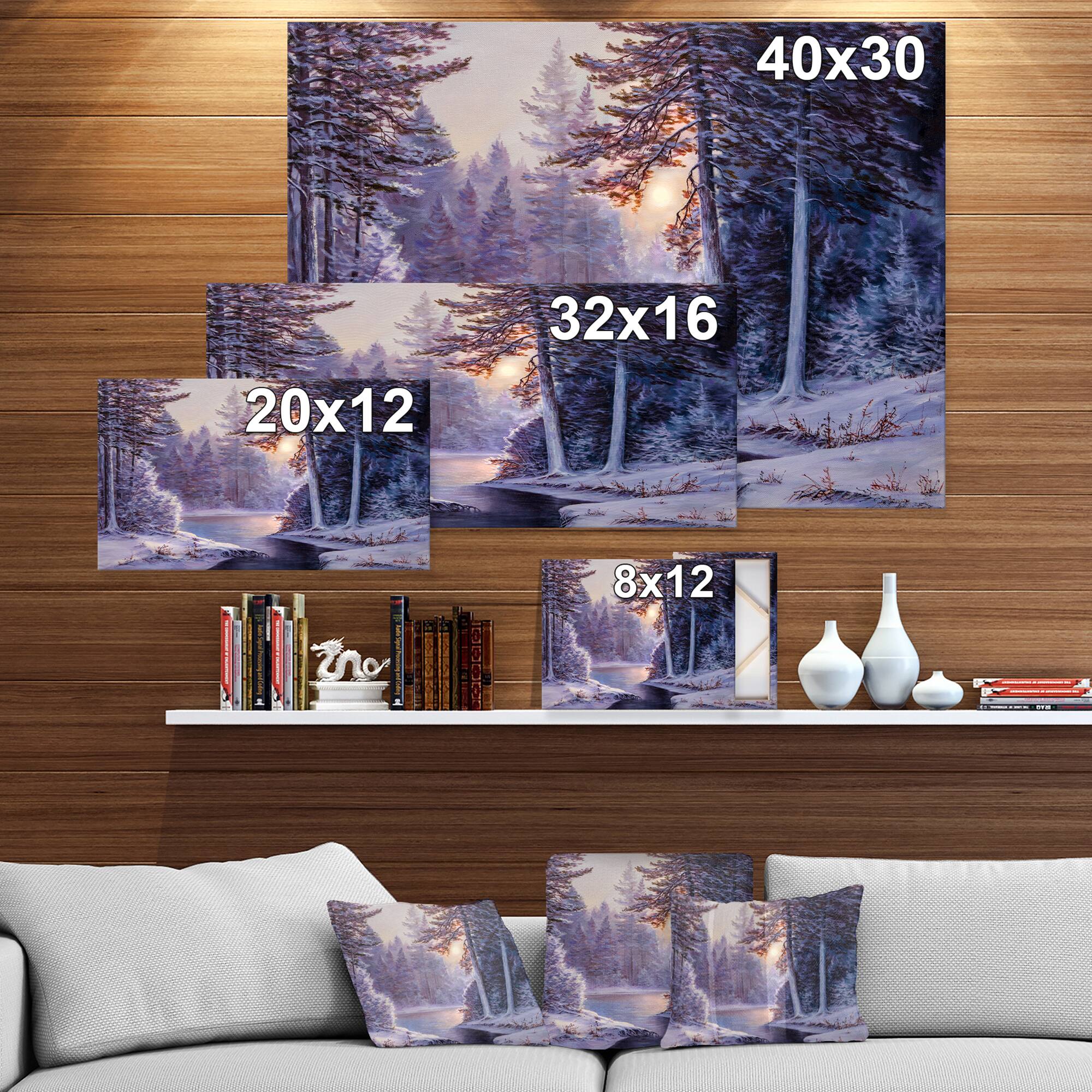 Designart - Winter Forest with the River in Frosty Day - Landscapes Painting Print on Wrapped Canvas