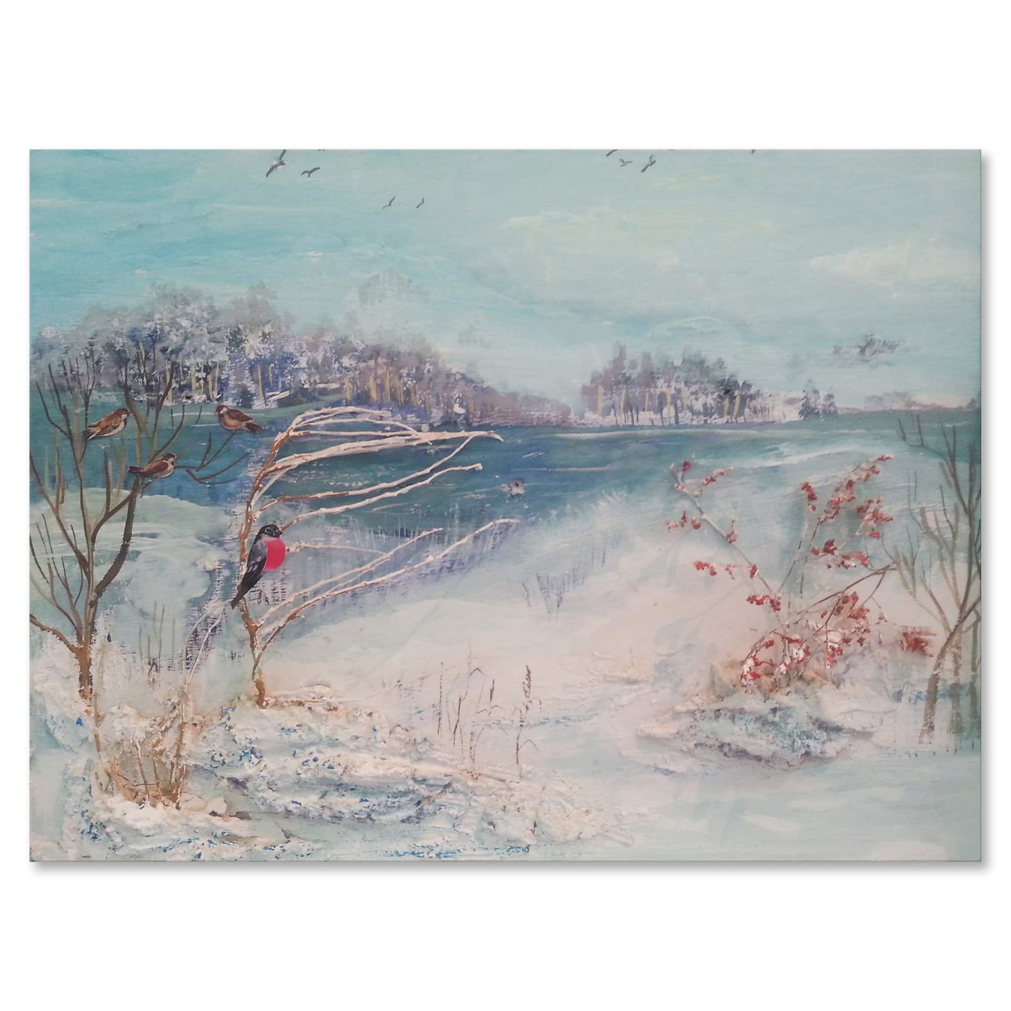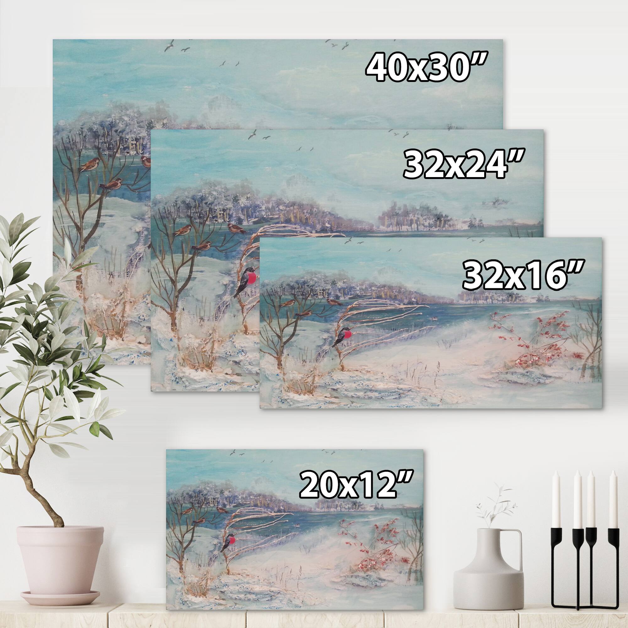 Designart - Winter Trees River and Birds - Lake House Canvas Wall Art Print