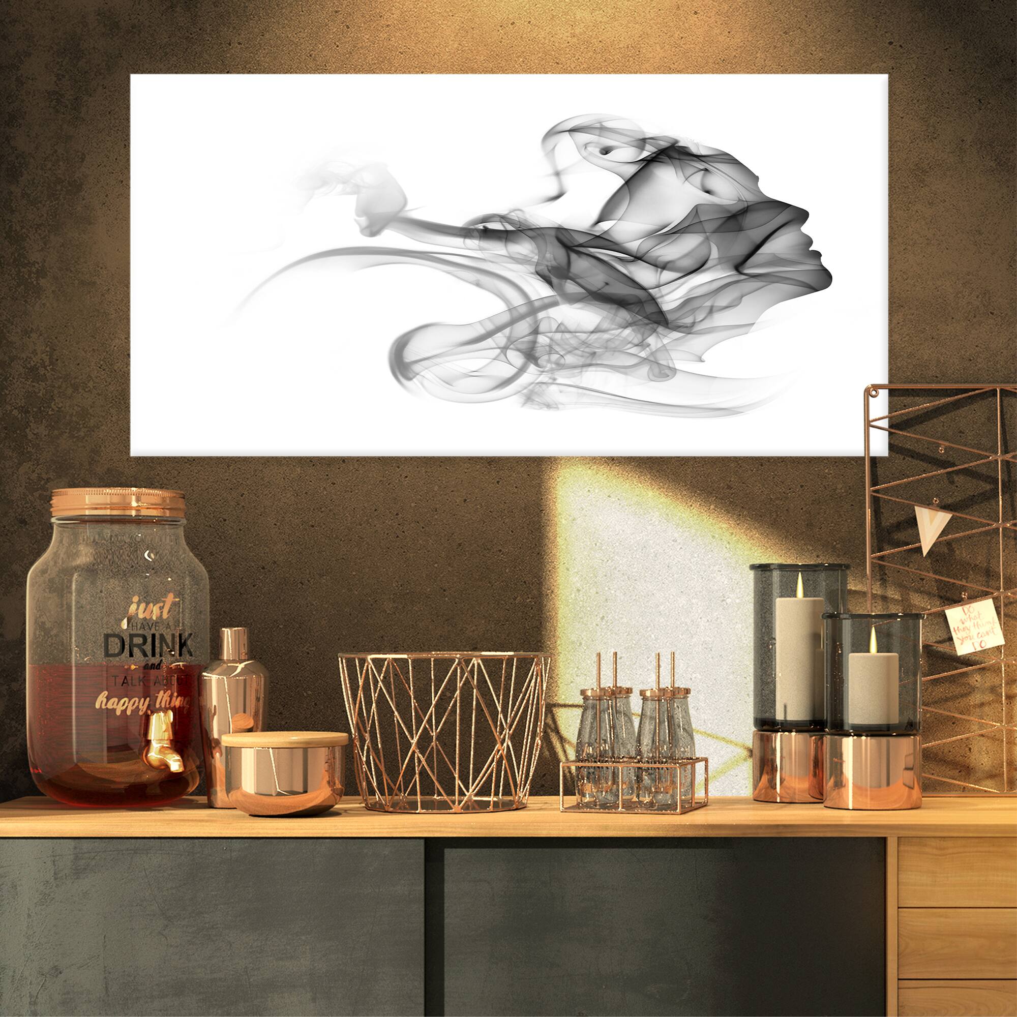 Designart - Woman and Smoke Double Exposure - Portrait Canvas Art Print