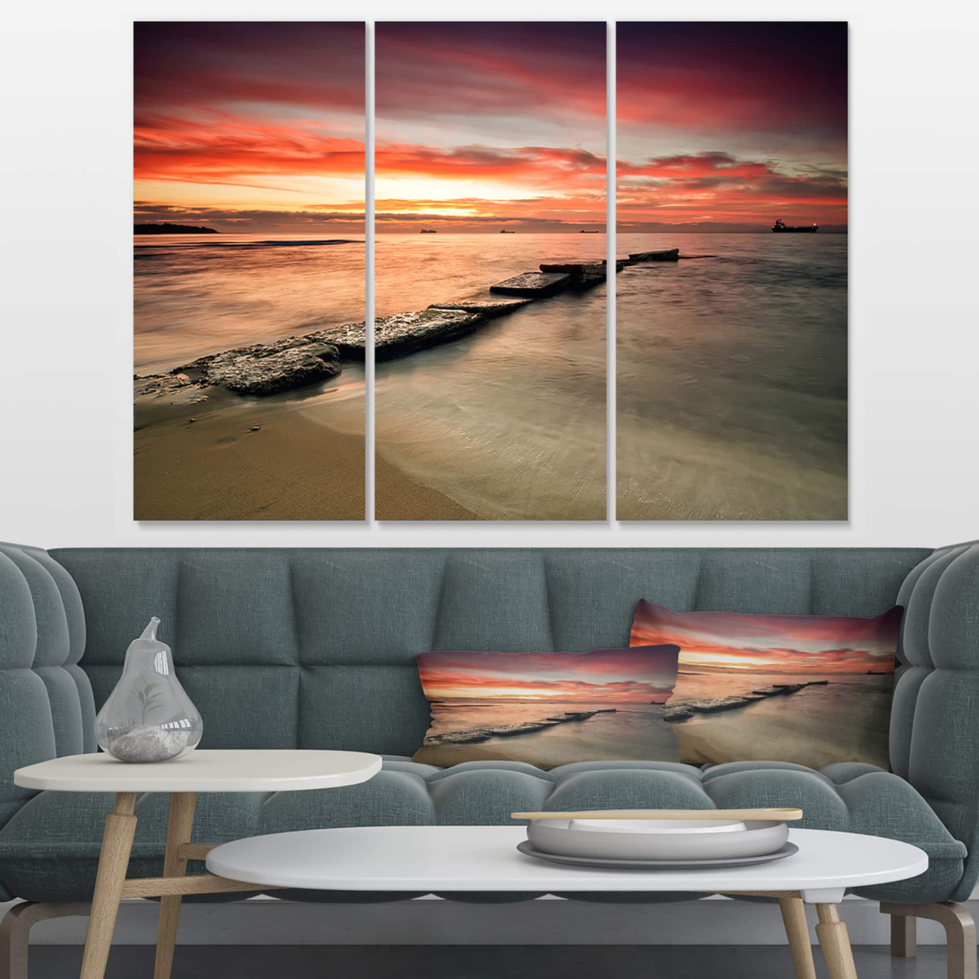 Designart - Wonderful Sunrise on Black Ocean - Beach Photo Canvas Print