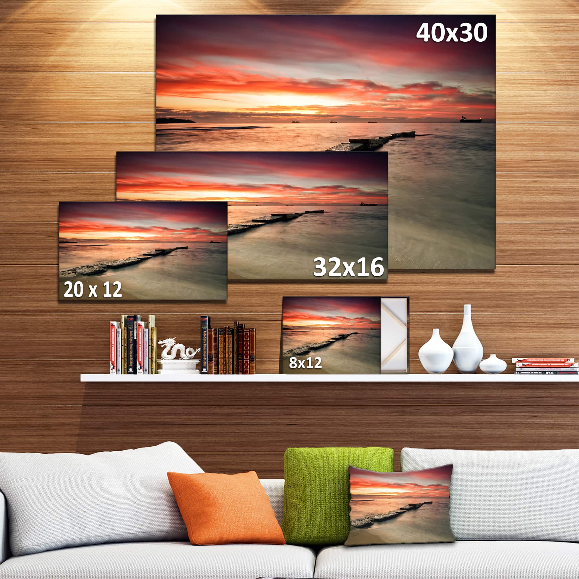 Designart - Wonderful Sunrise on Black Ocean - Beach Photo Canvas Print