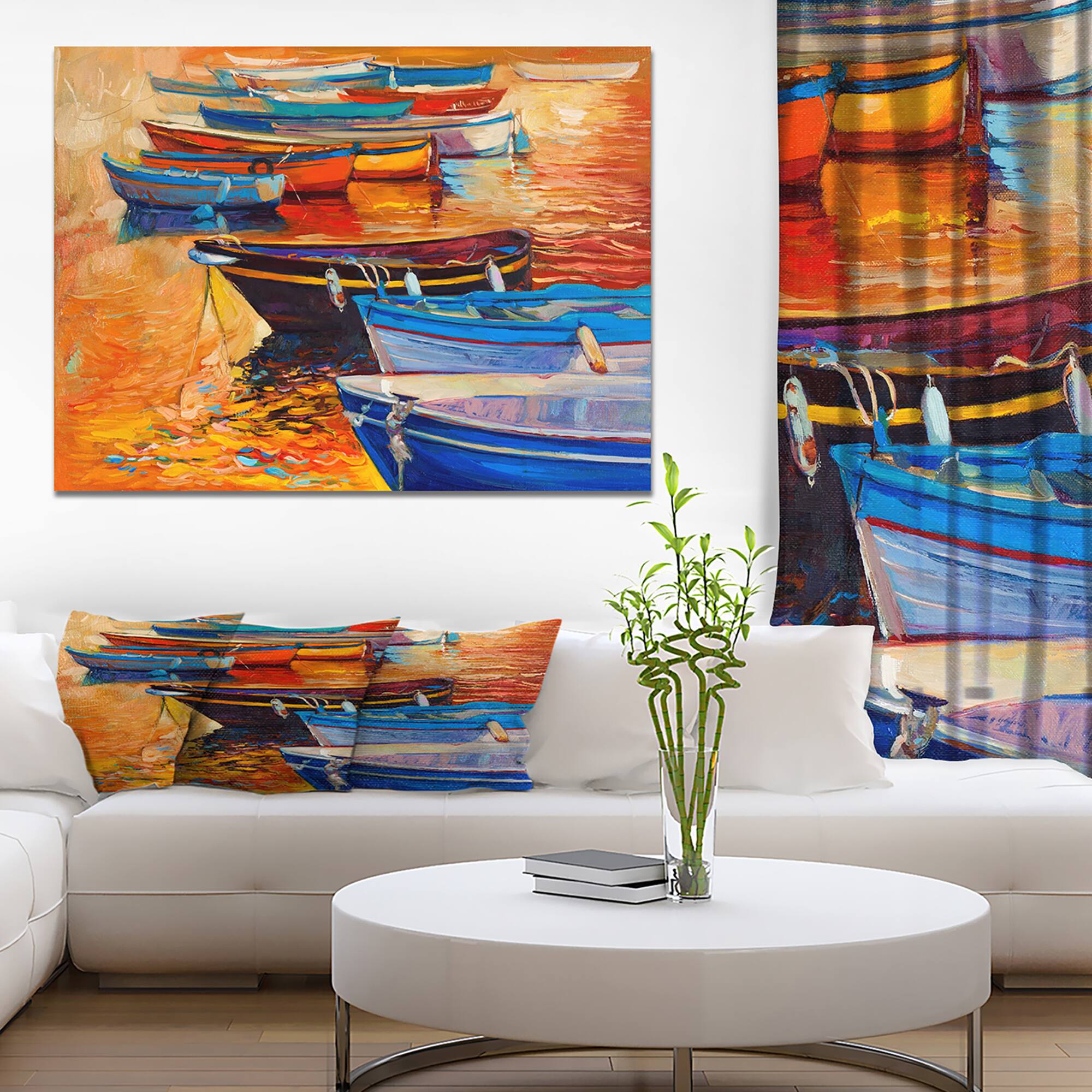 Designart - Wooden Boats in Calm Water - Nautical Painting Print on Wrapped Canvas