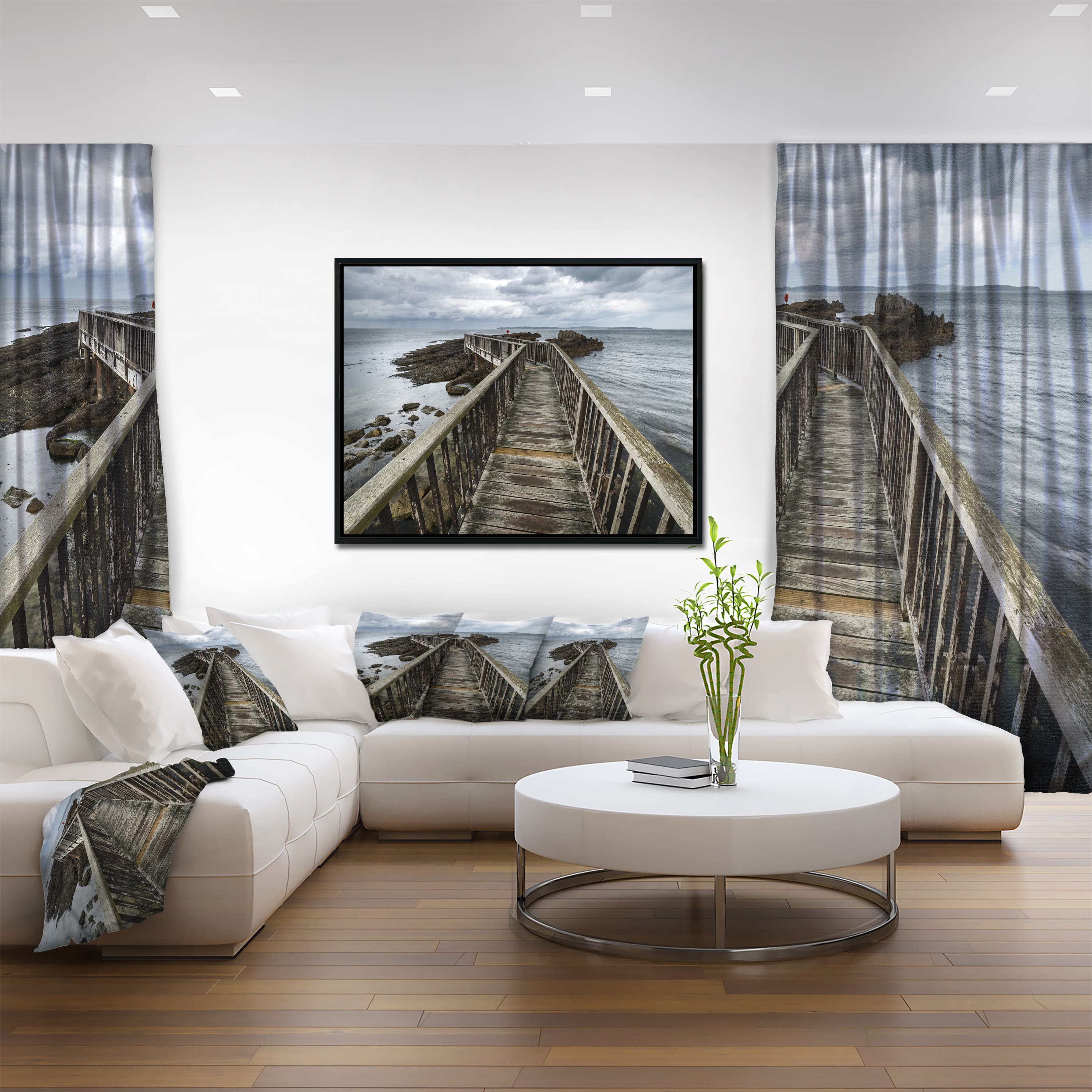 Designart - Wooden Pier on North Irish Coastline - Sea Bridge Framed Canvas Art Print