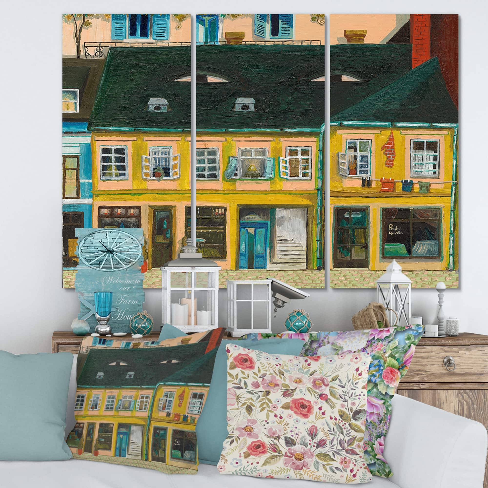 Designart - Yellow Facade of Houses In Street In Paris - French Country Canvas Wall Art Print