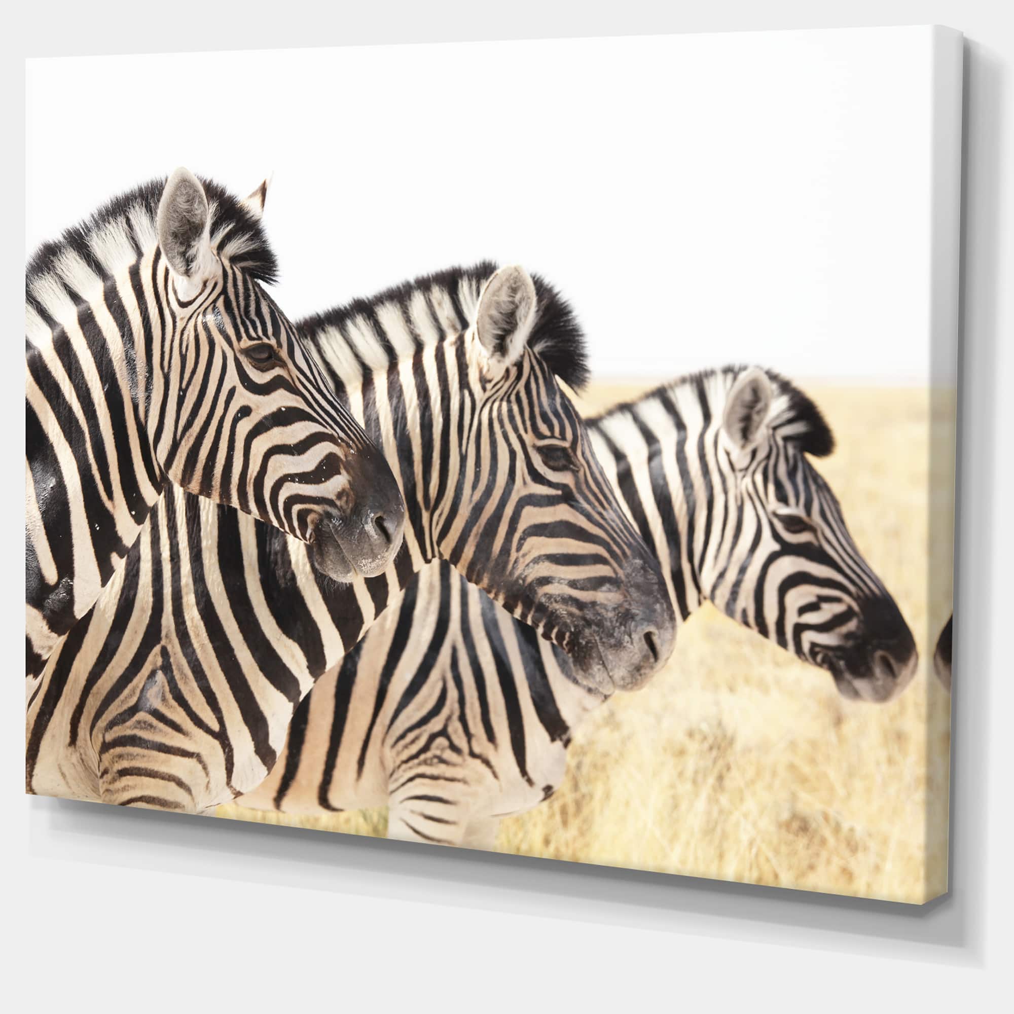 Designart - Zebras in A Row in Grassland - African Wall Art Print
