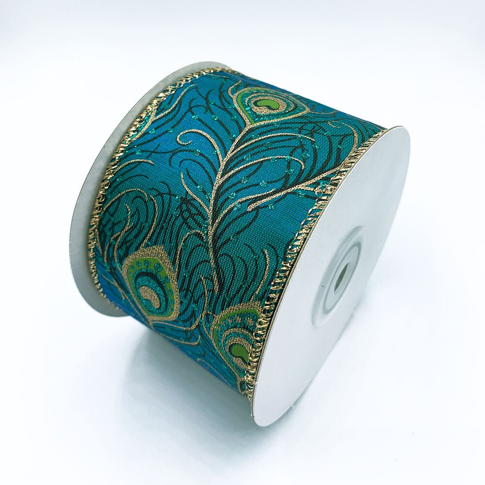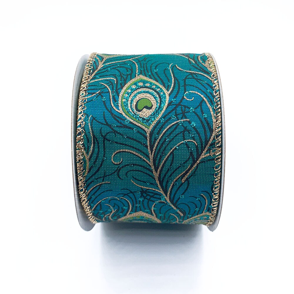 Designer's Shop WR 63-5083 Peacock Green Gold edge 2.5" wired edge ribbon 10 yard spooled