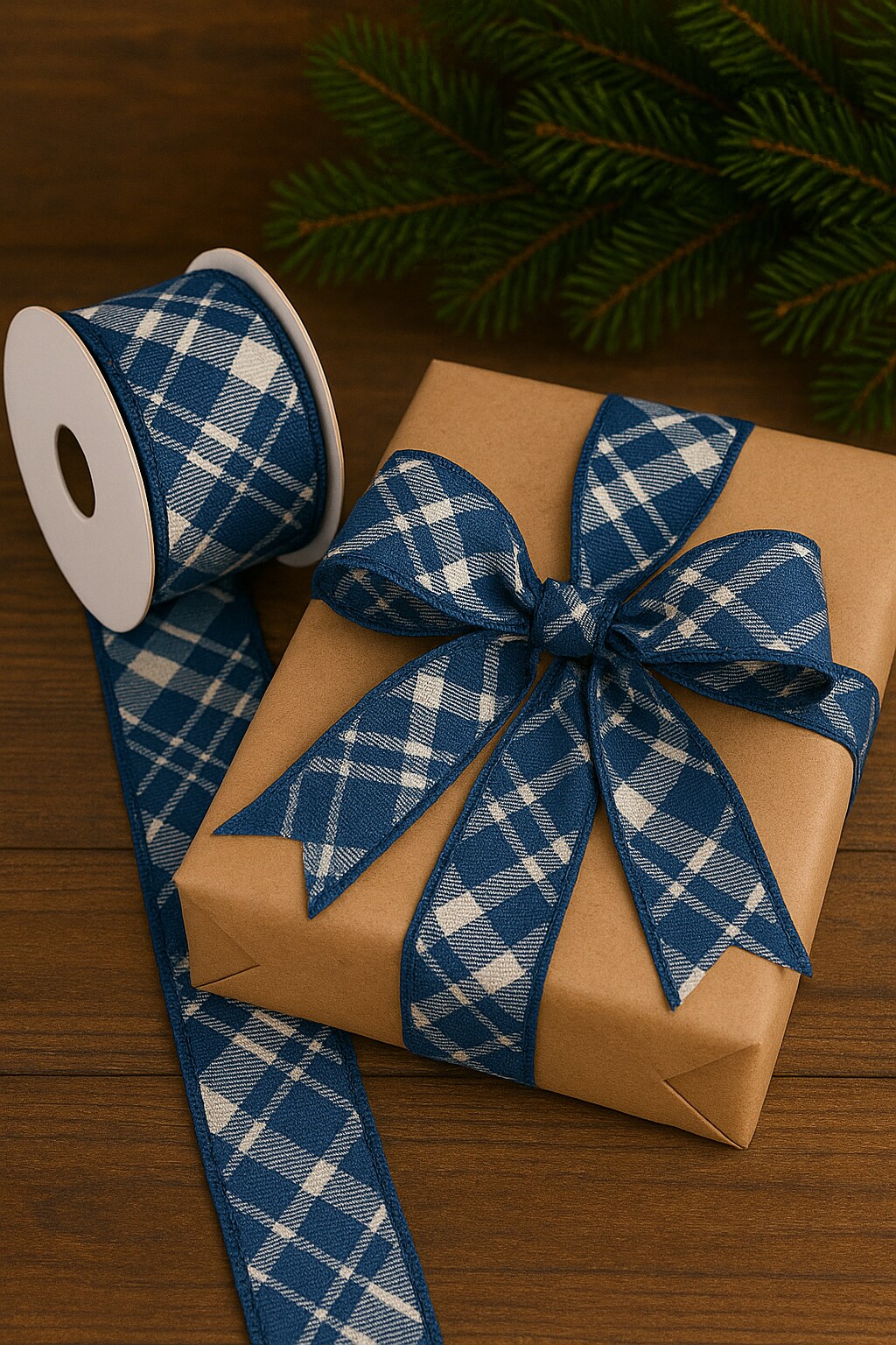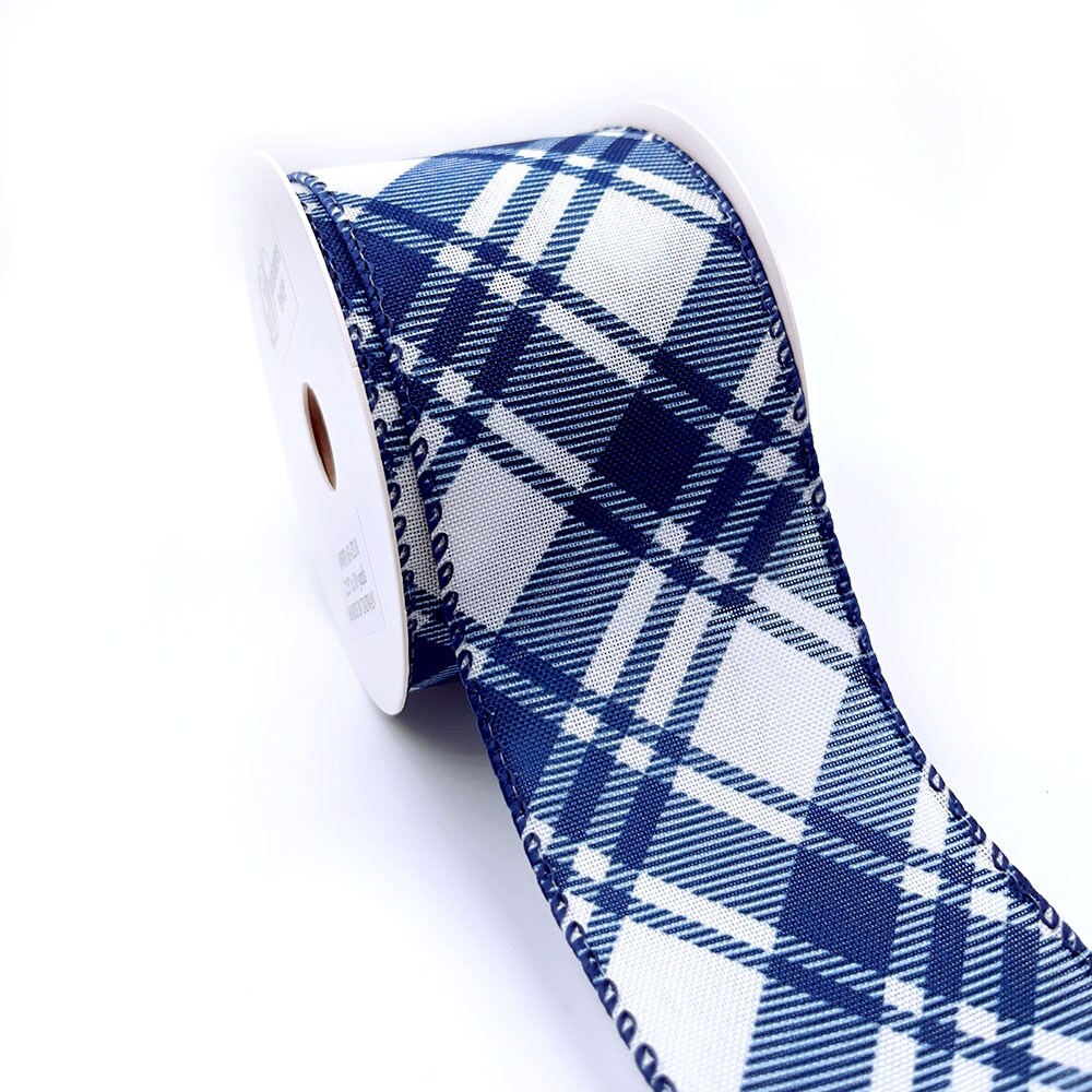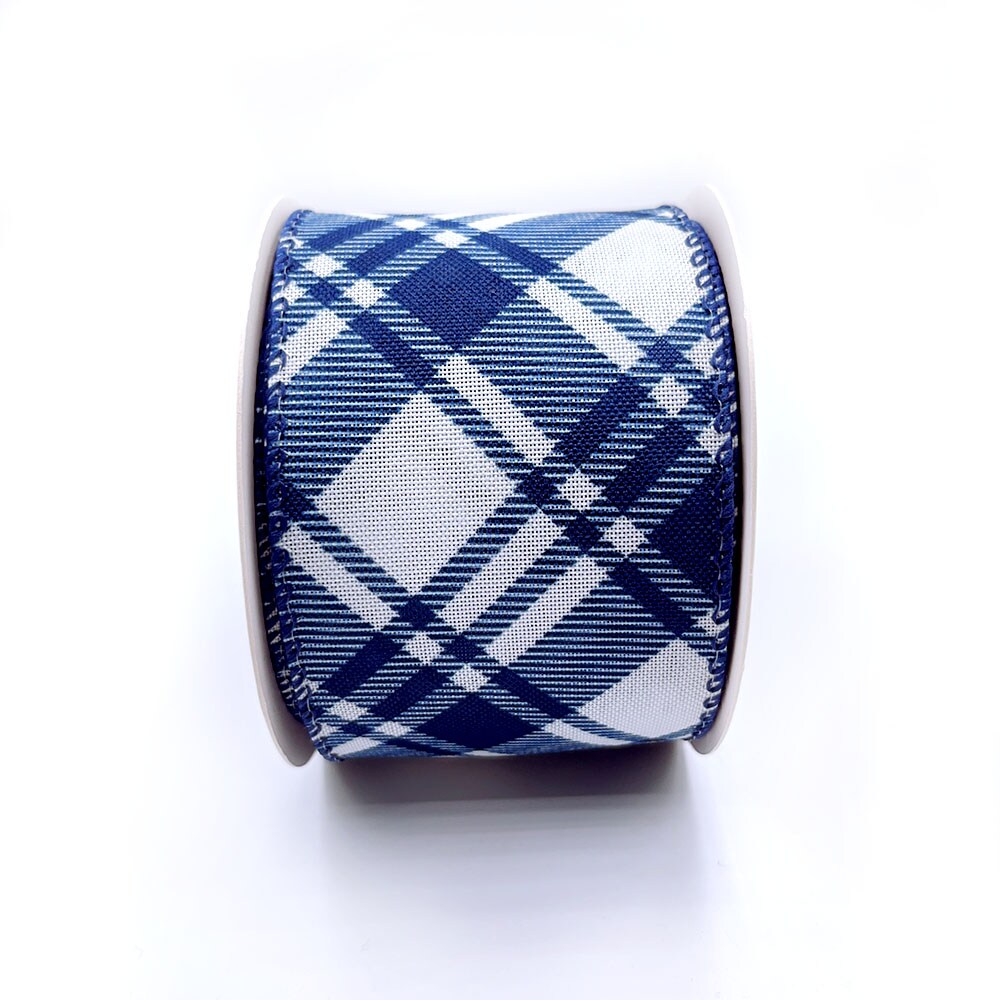 Designer's Shop WR 63-5218 2.5” x 10 yard Holiday Blue and White plaid wired edge ribbons