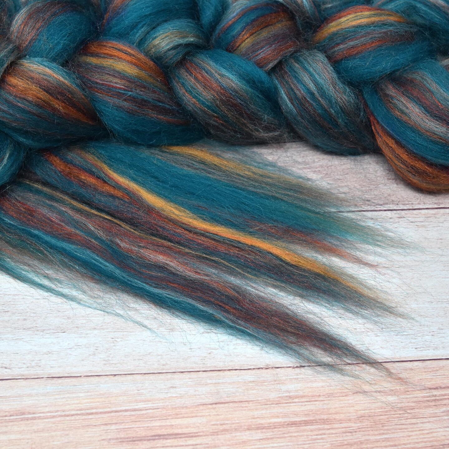 Designer Blend Shetland Wool and Tussah Silk Top Roving. Fancy, Colorful, Exotic - Limited Edition. Cyprus Sunset
