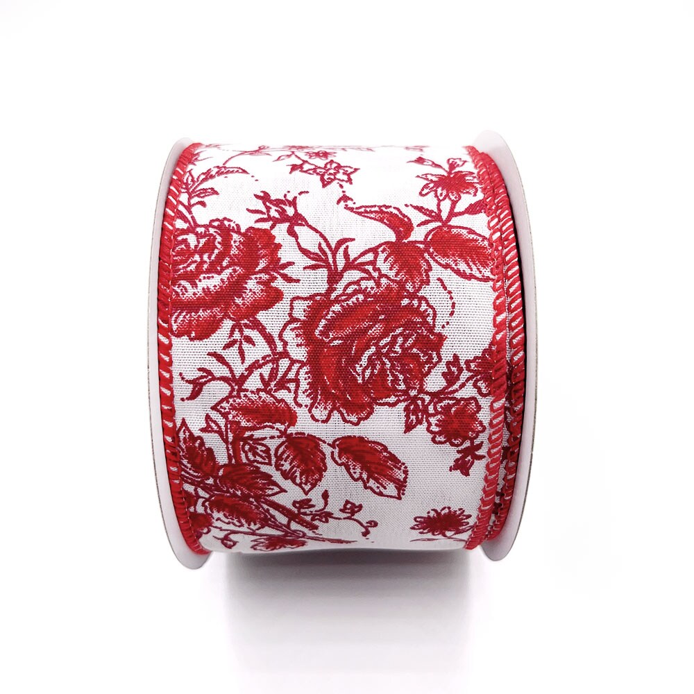 Designer’s Shop Rose Floral wired edge ribbon, 2.5” x 10 yard, Holiday and Wedding Ribbons