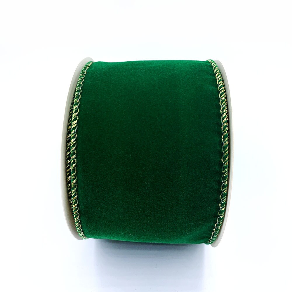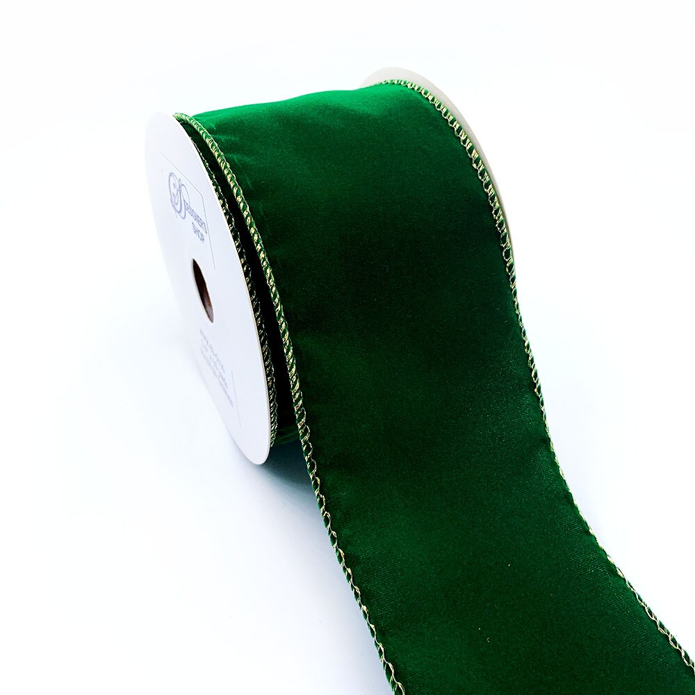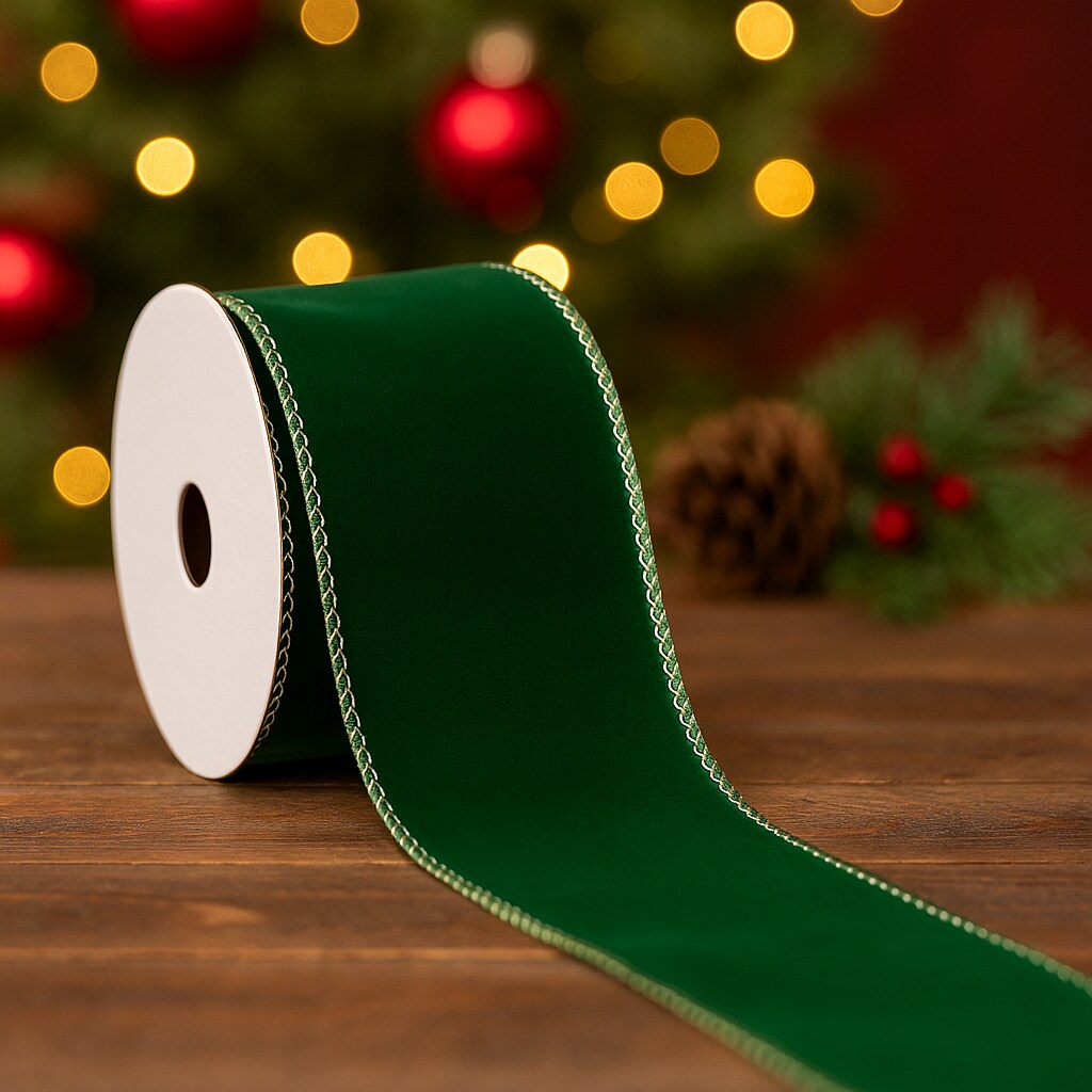 Designer’s Shop WR 63-5110 2.5” x 10 yard Holiday Velvet Green with Metallic Silver wired edge ribbons