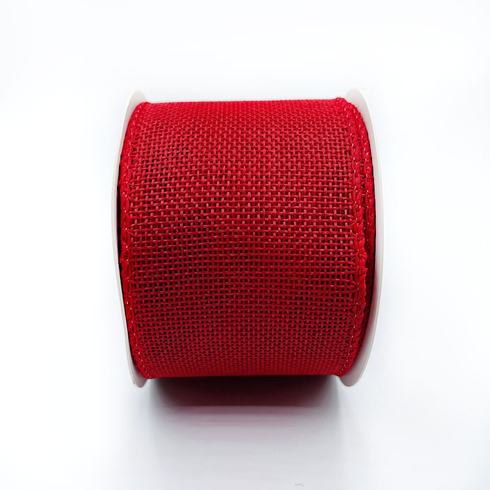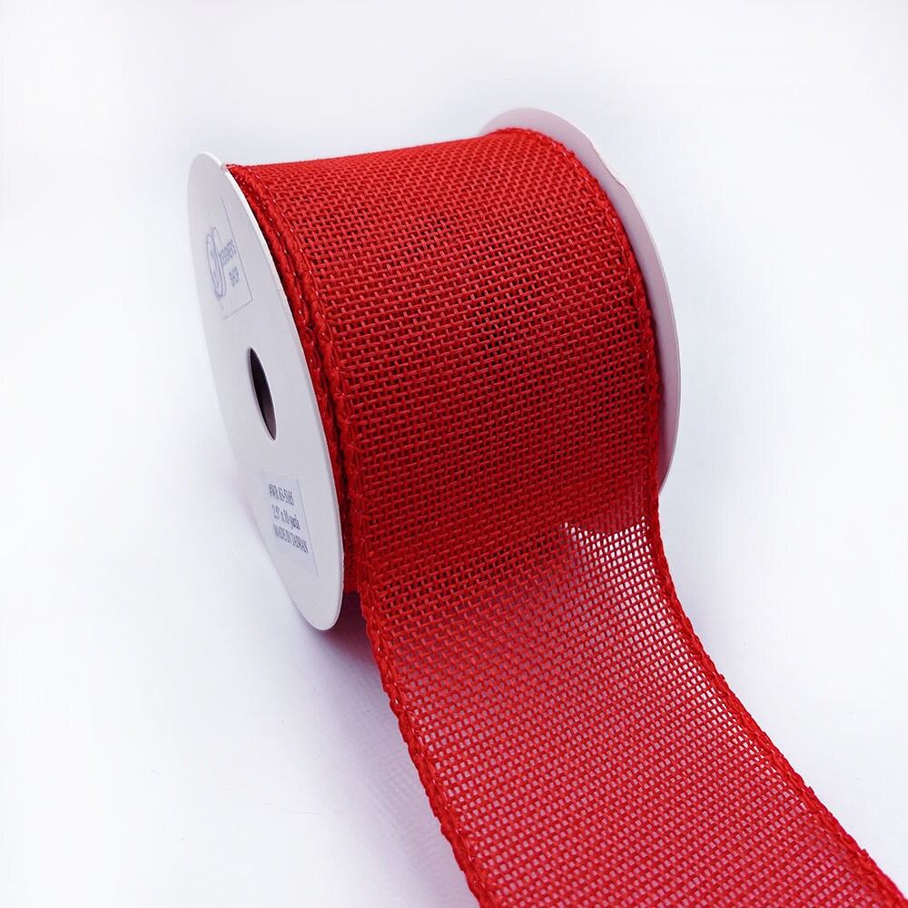 Designer’s Shop WR 63-5165 2.5” x 10 yard Holiday Red Burlap wired edge ribbons