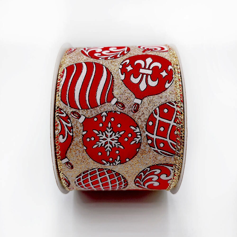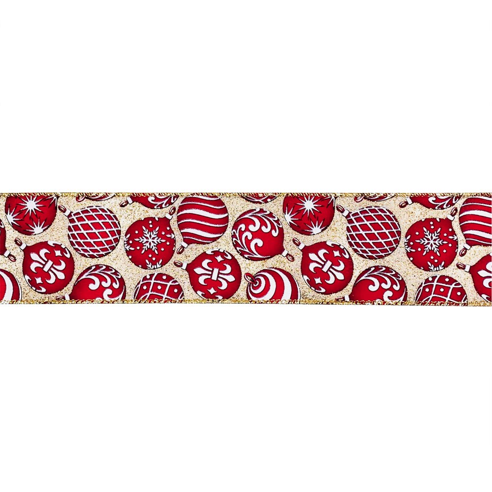 Designer’s Shop WR 63-5182 Holiday Red/White Ornaments Wired edge ribbon 2.5” x 10 yard