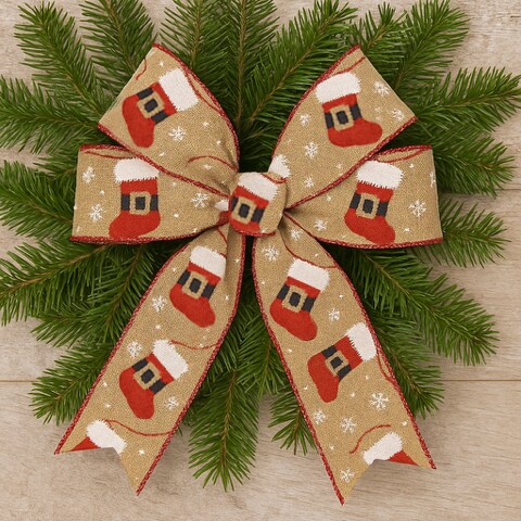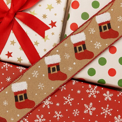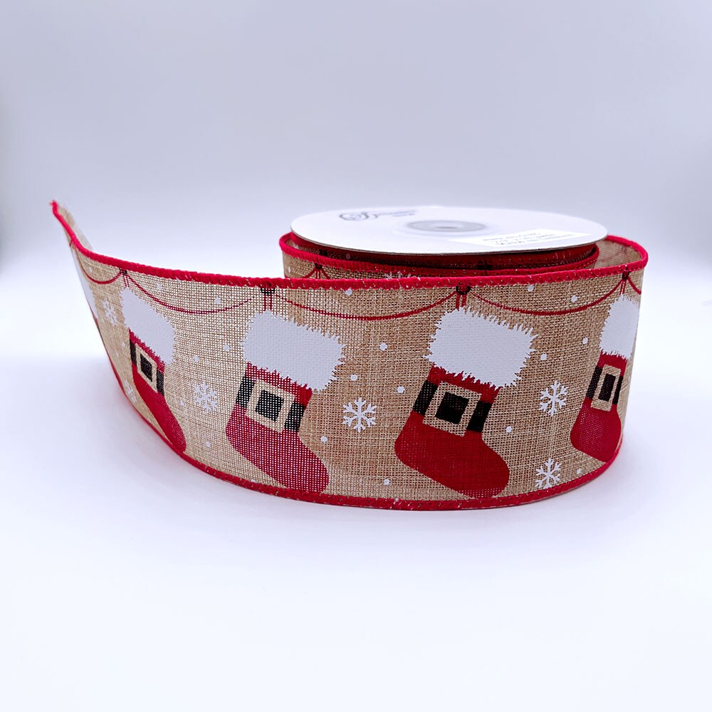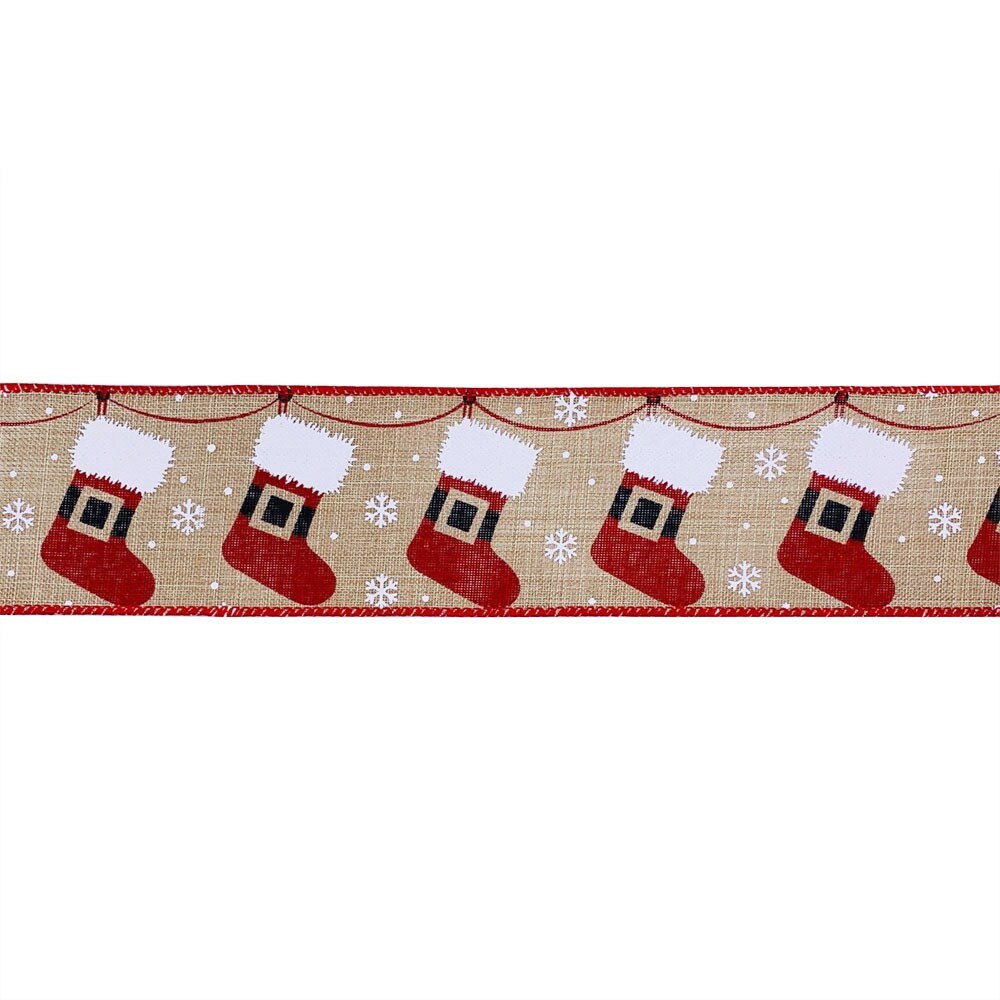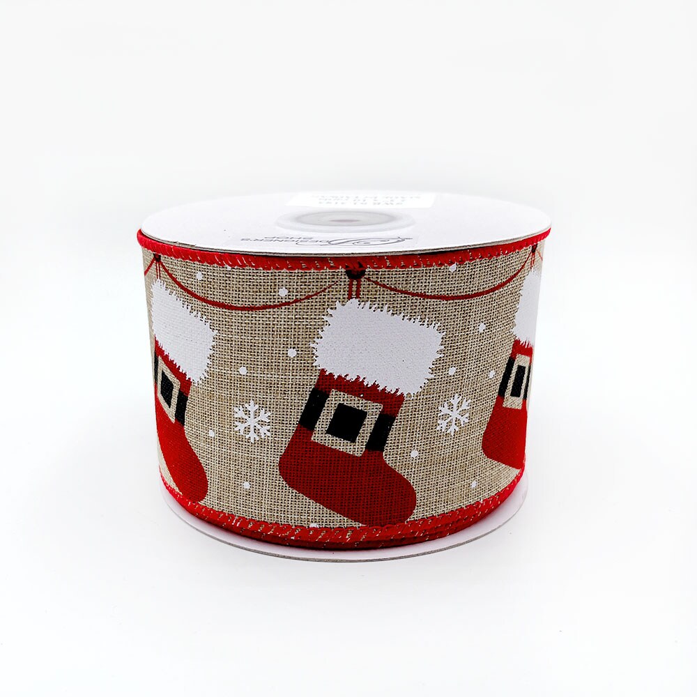 Designer’s Shop WR 63-5185 Holiday Hanging Santa Stocking wired edge ribbons (2.5”x10yards)