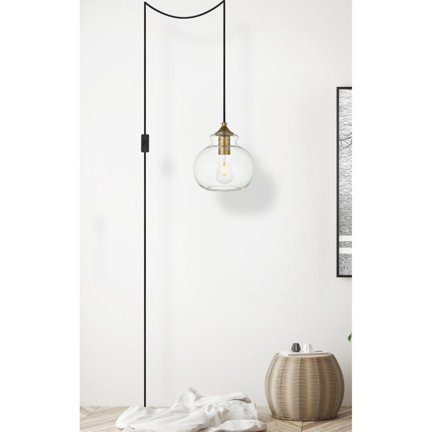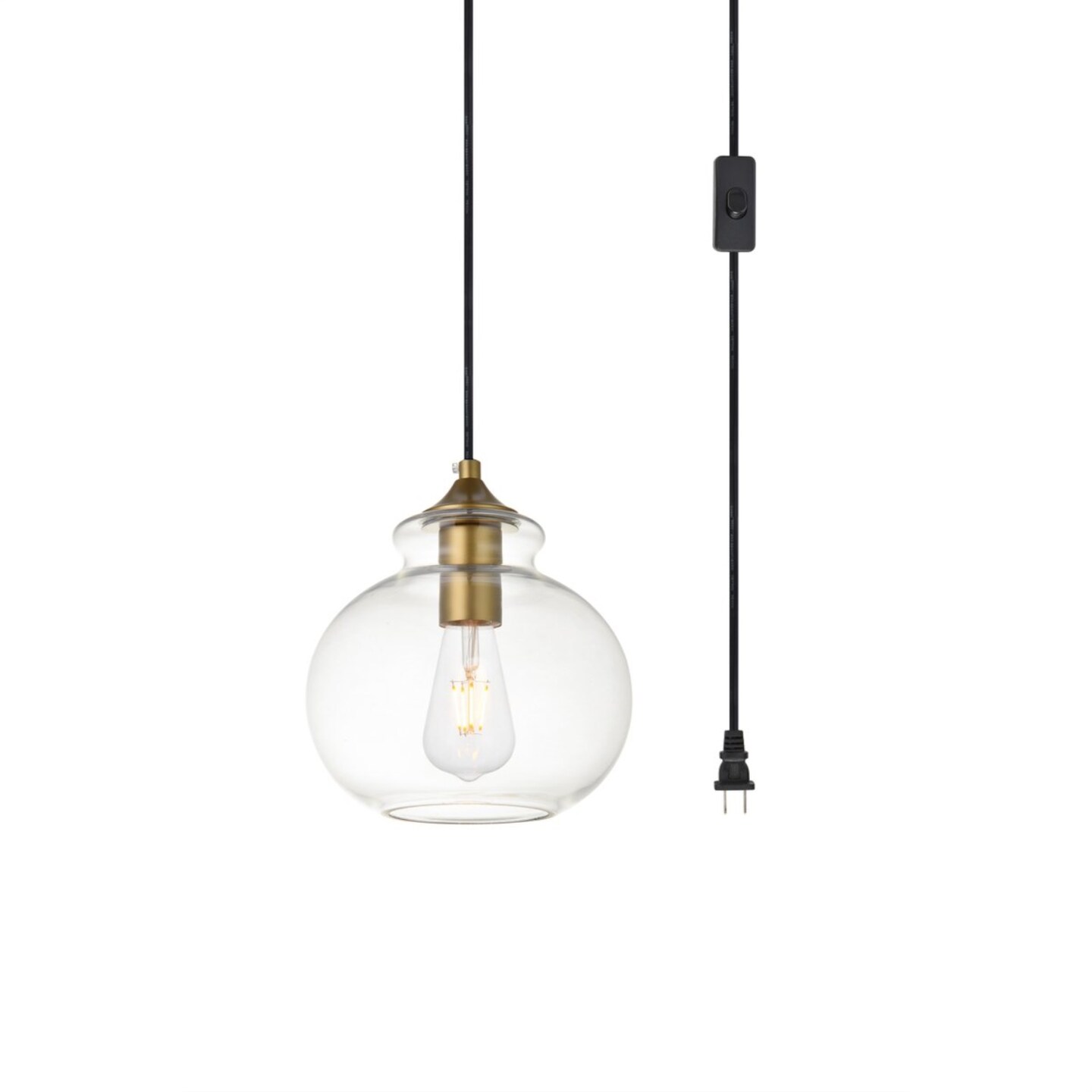Destry 1 Light brass plug-in Pendant With Clear Glass