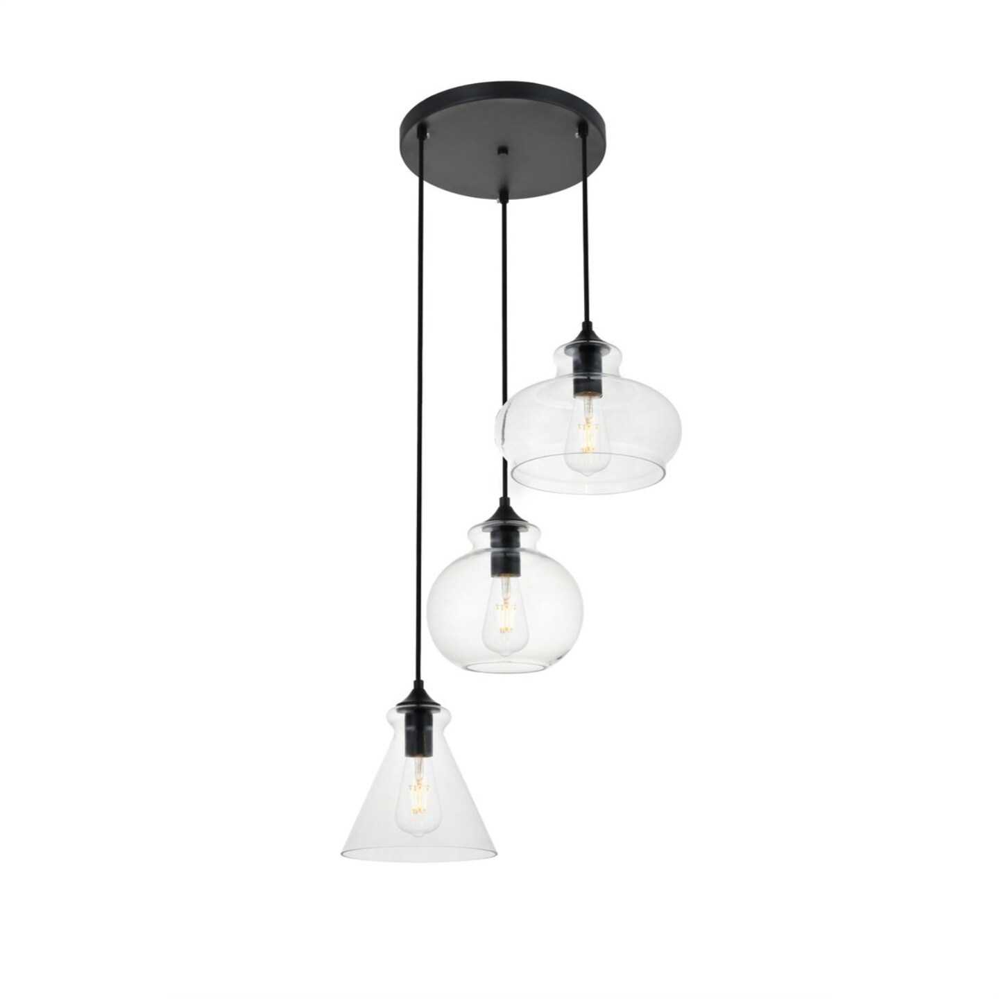 Destry 3 Lights Brass Pendant With Clear Glass