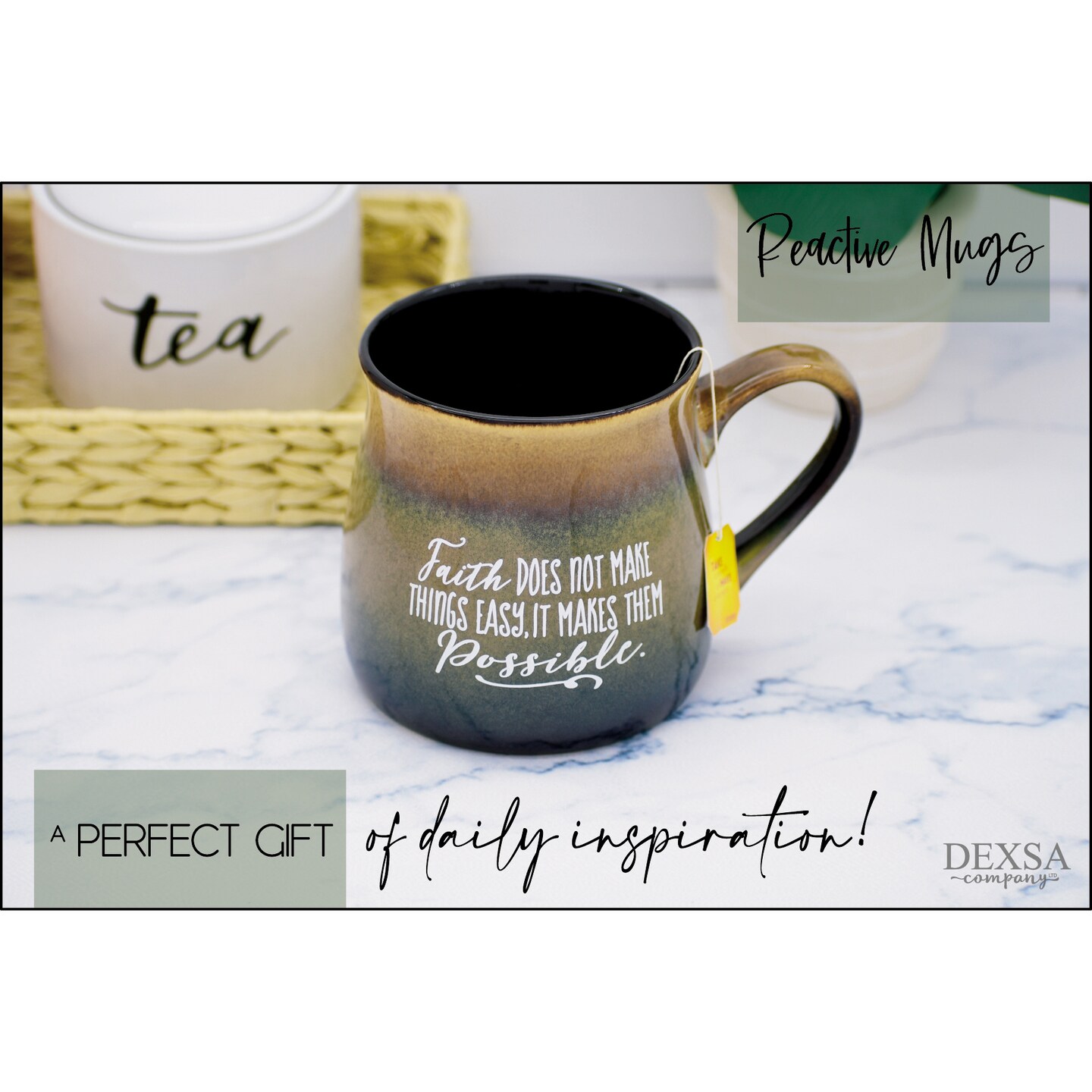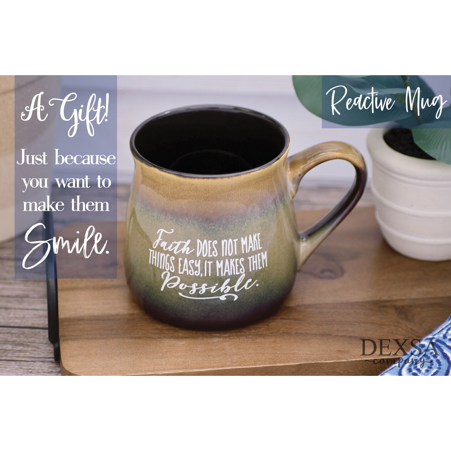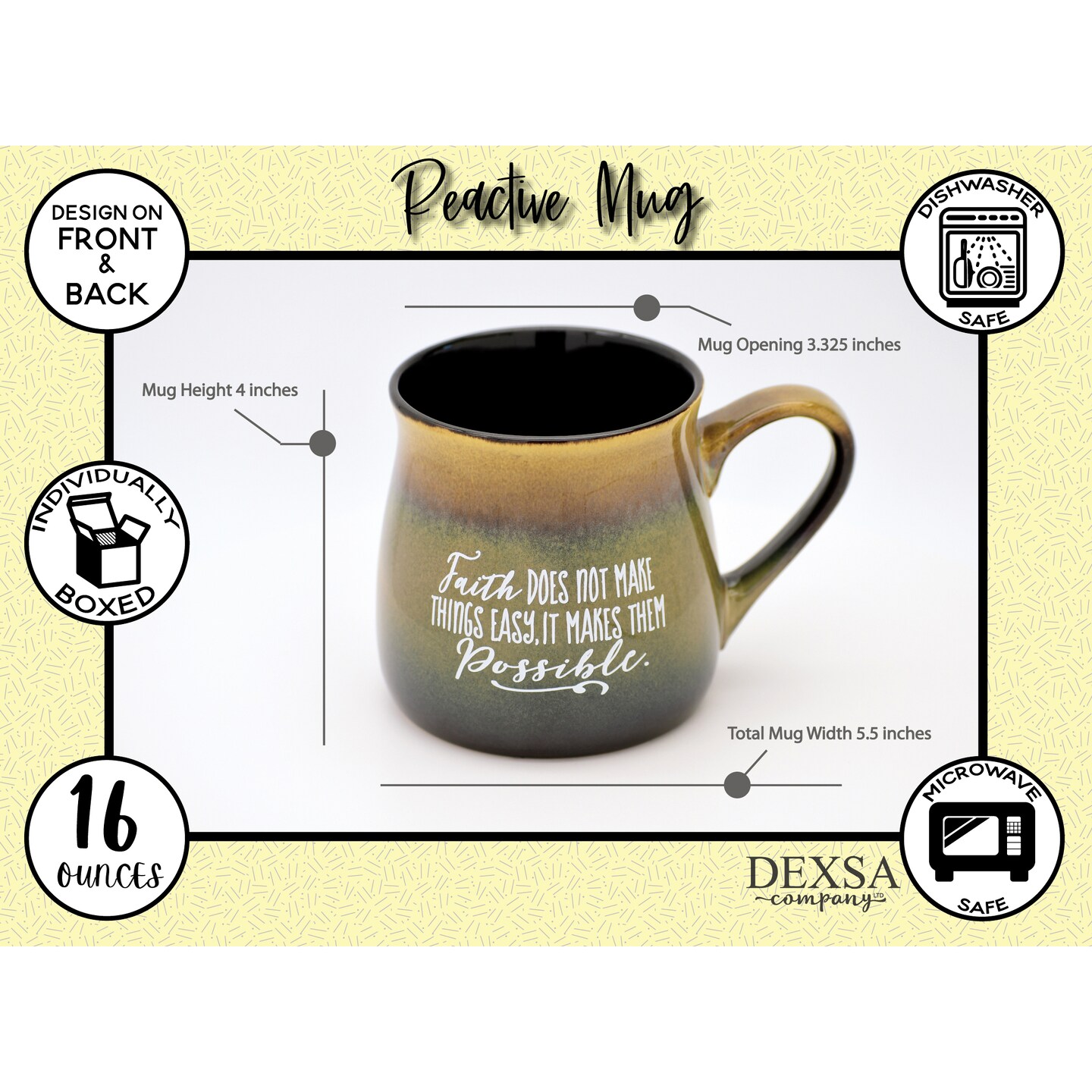 Dexsa Faith Coffee Tea Soup Ceramic Mug | Faith does not make things easy. It makes them possible. | 16 ounce Designer Mug with Inspiring Sentiment | Elegant Pottery Look