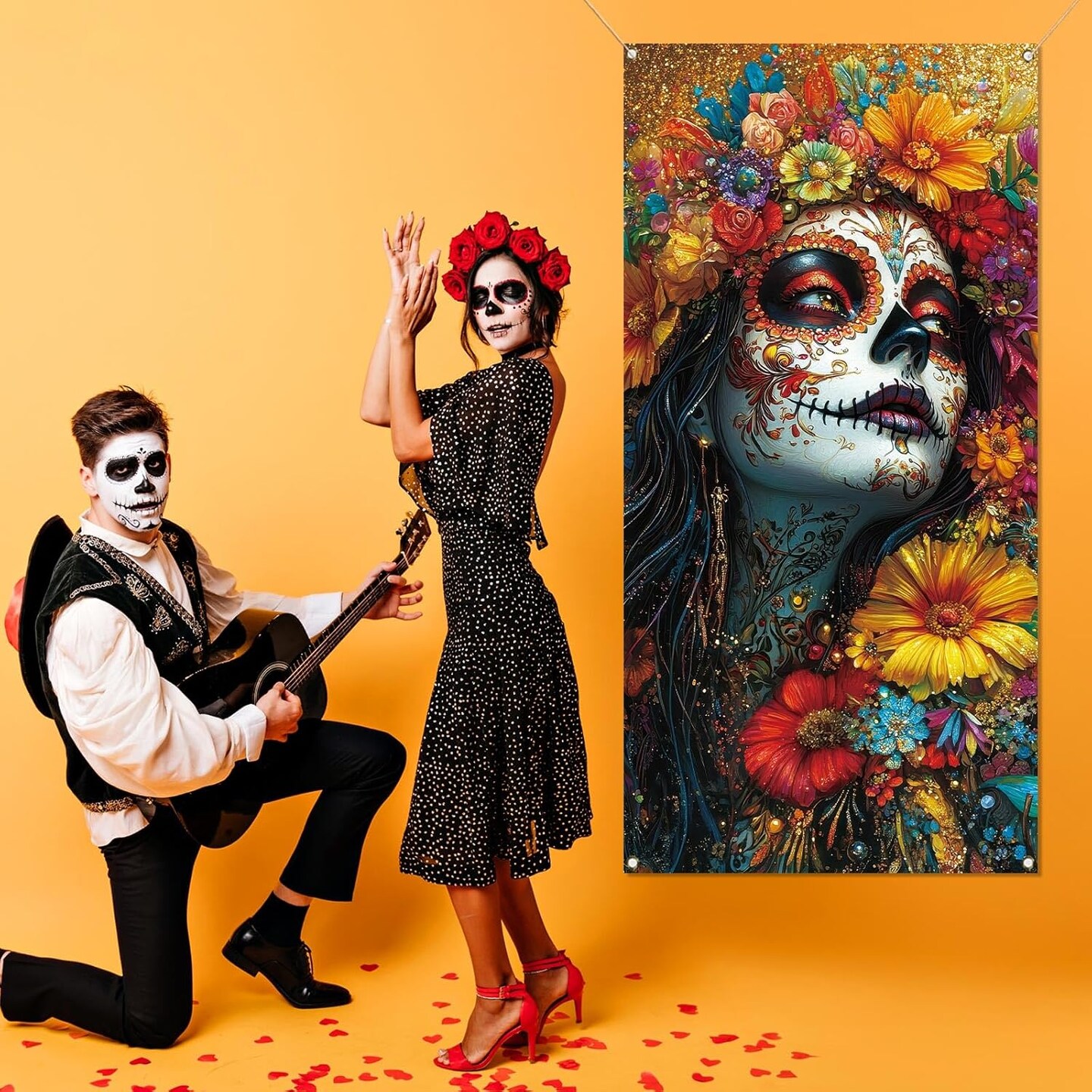 Dia De Los Muertos Door Banner Mexican Day of The Dead Decorations