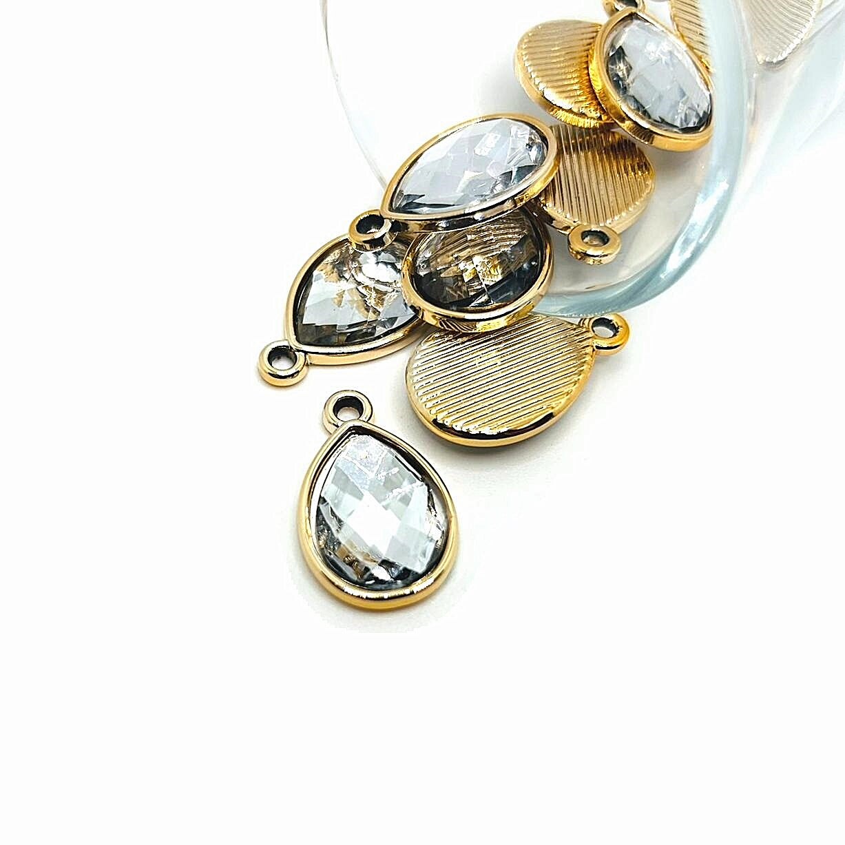 Diamond and Gold Acrylic Teardrop Charms, 25x16mm