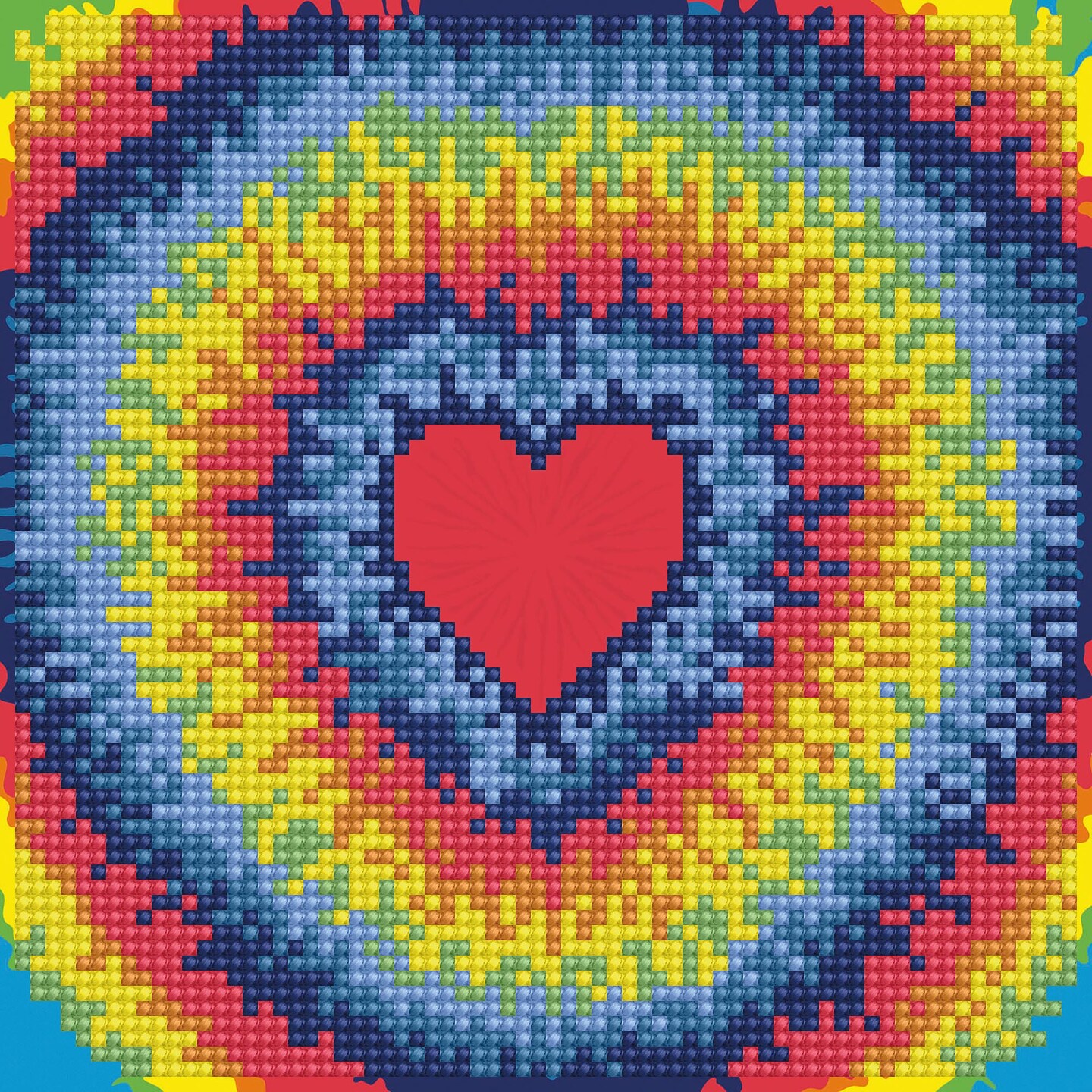 DIAMOND ART BY LEISURE ARTS Tie Dye Heart, 8"x8", Beginner Diamond Painting Kits for Adults, Diamond Art for Adults, Diamond Art Kit, Diamond Art Painting