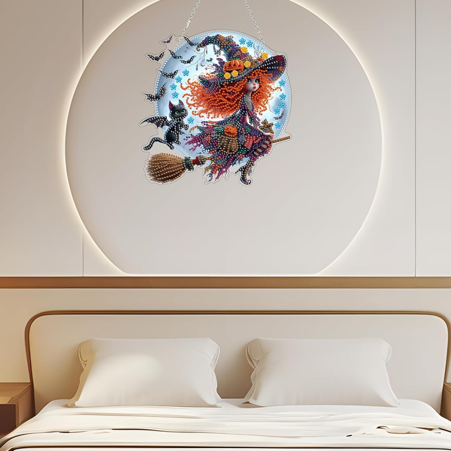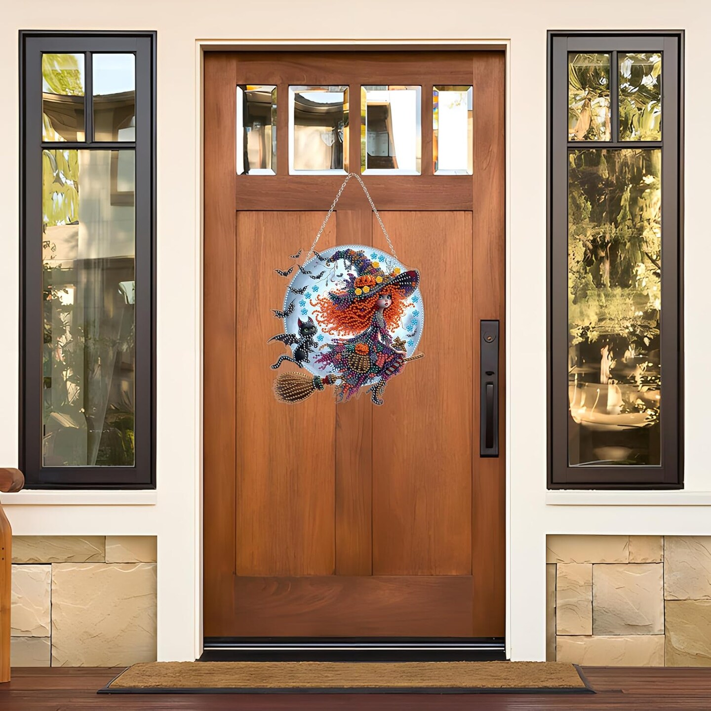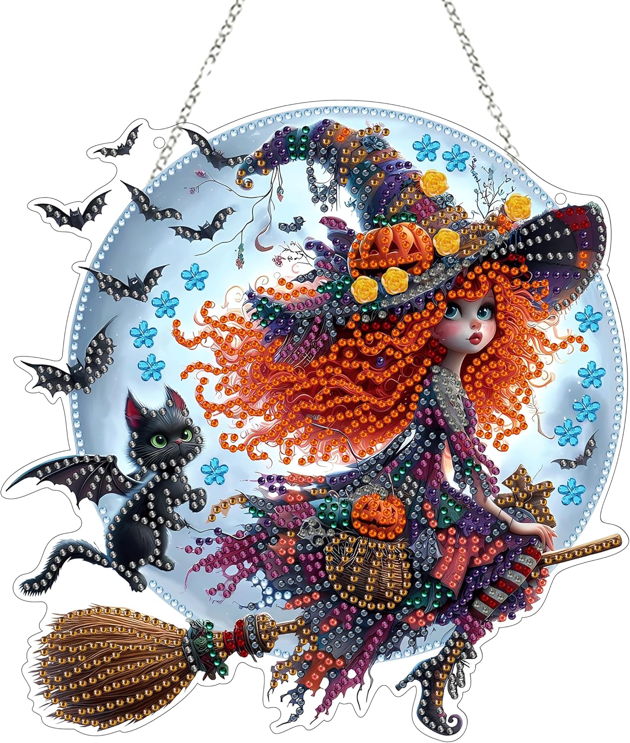 Diamond Art Hanging Kit – Halloween Witch DIY Double-Sided 5D Acrylic Rhinestone Window & Wall Pendant, Home & Garden Decor for Adults