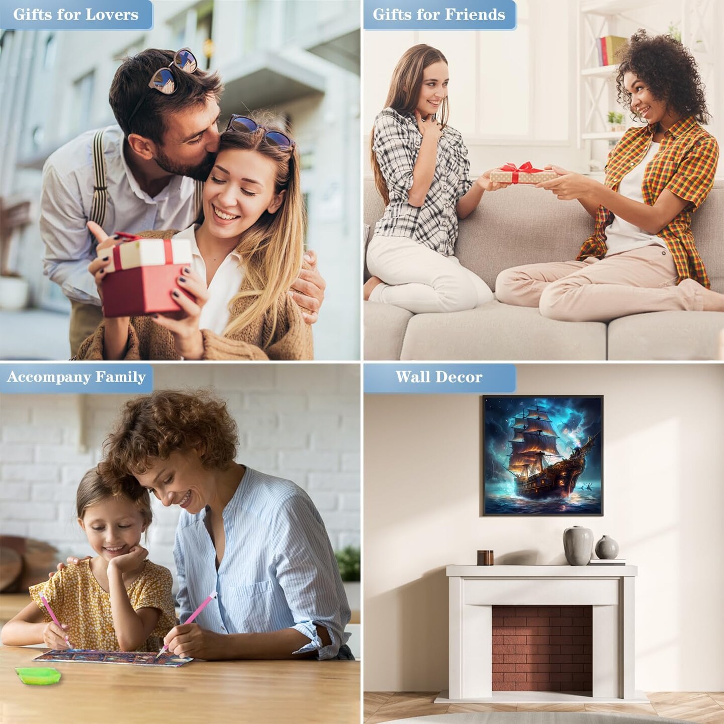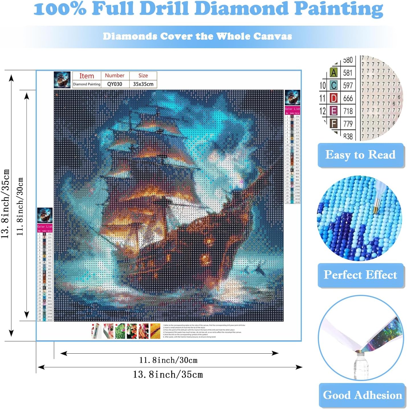 Diamond Art Kit for Adults – Pirate Ship Design, 5D Diamond Painting Kit, DIY Diamond Dots Gem Art for Home Wall Decor & Gifts – 14x14 Inch
