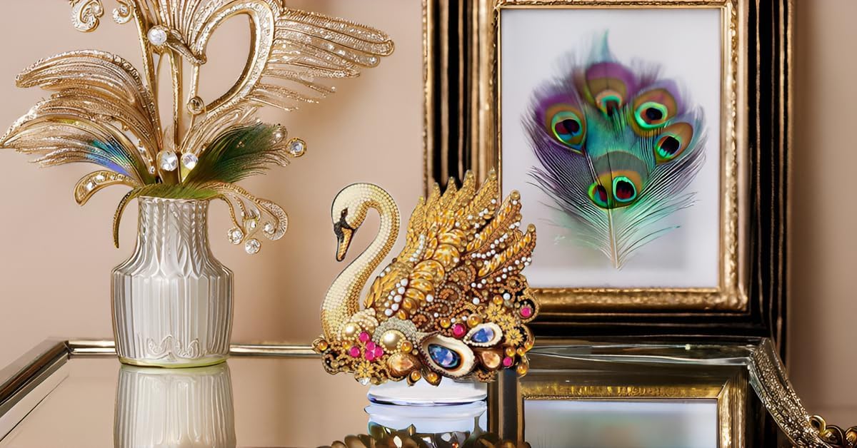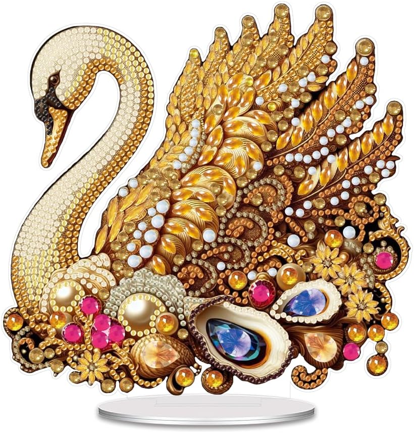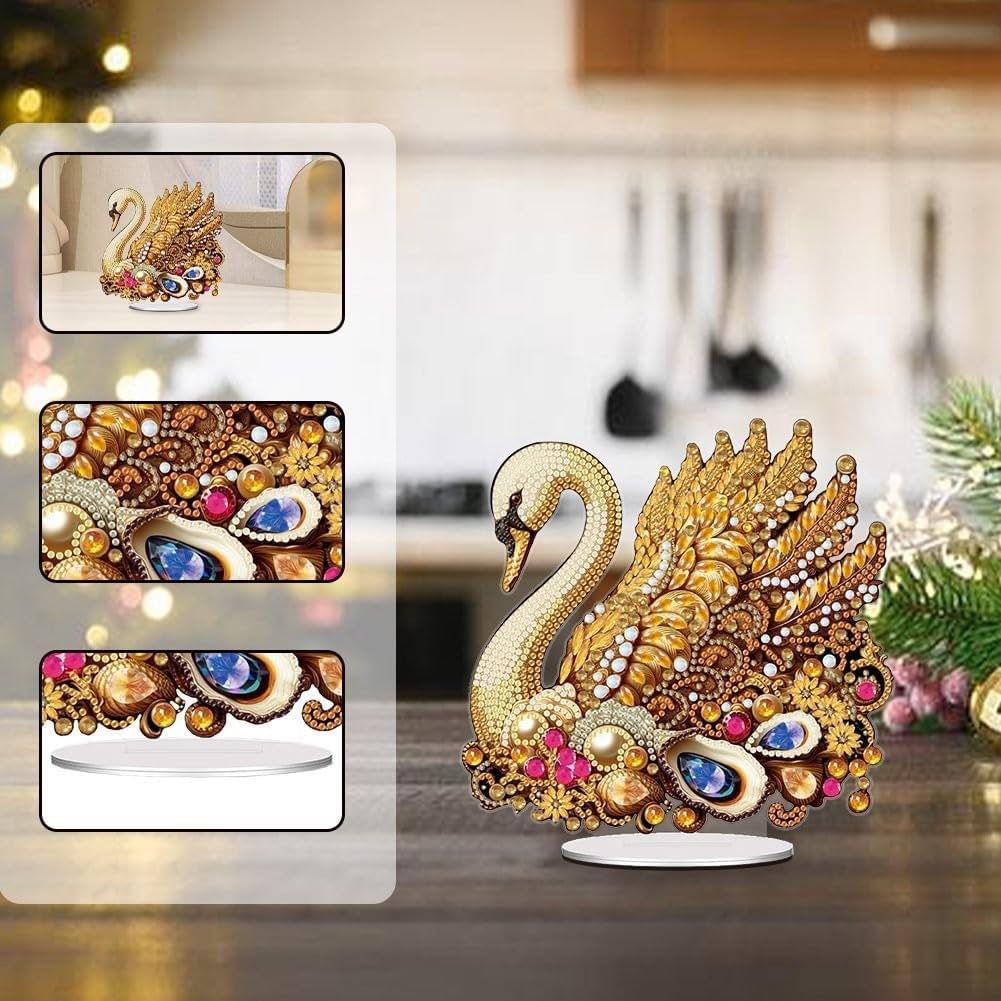 Diamond Art Kit for Adults – Swan Special Gem Desktop Ornament, Double-Sided DIY Diamond Art Tabletop Stand-Up Decor