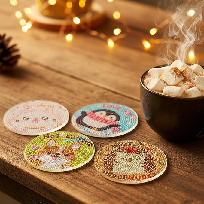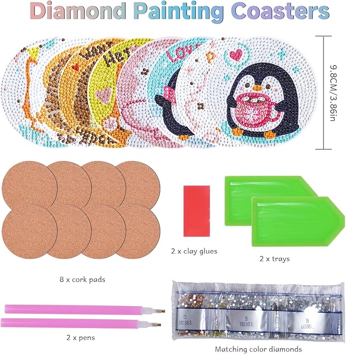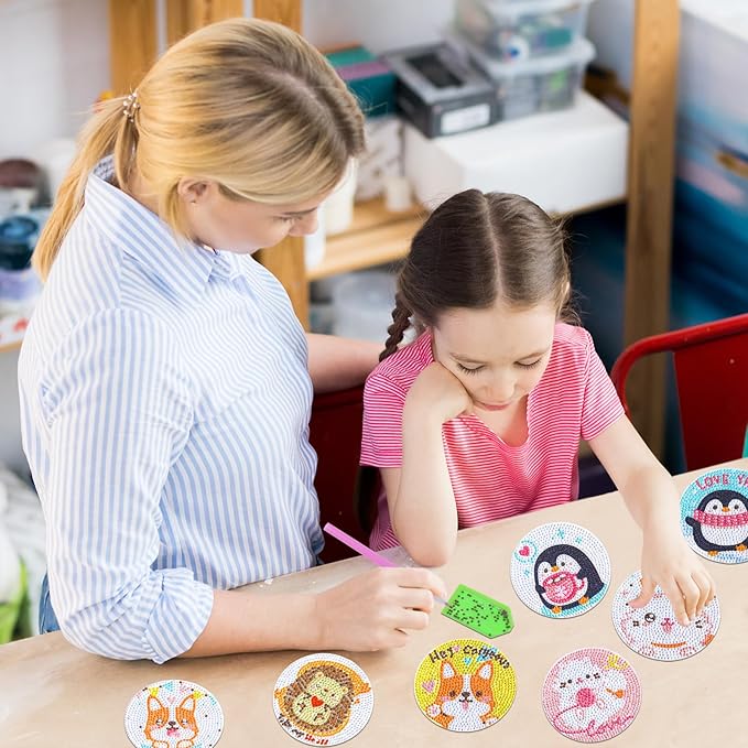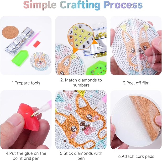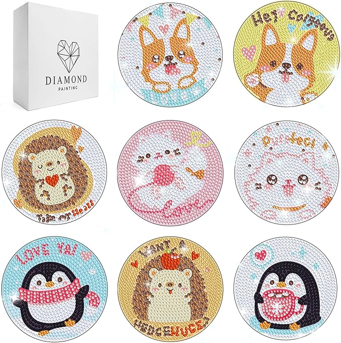 Diamond Art Kit for Kids 8 Pcs Easter Arts & Crafts Kits for Ages 6-12 Gifts for 9 10 11 Year Old Girls Diamond Art Coasters Painting Kits for Preteen