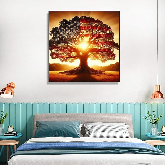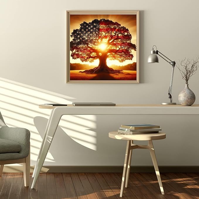 Diamond Art Kits for Adults. American Tree Diamond Painting kit for Adults Full Drill Round Gem Art 5D Diamond Dots Suitable Home Wall Decor 12x12inch