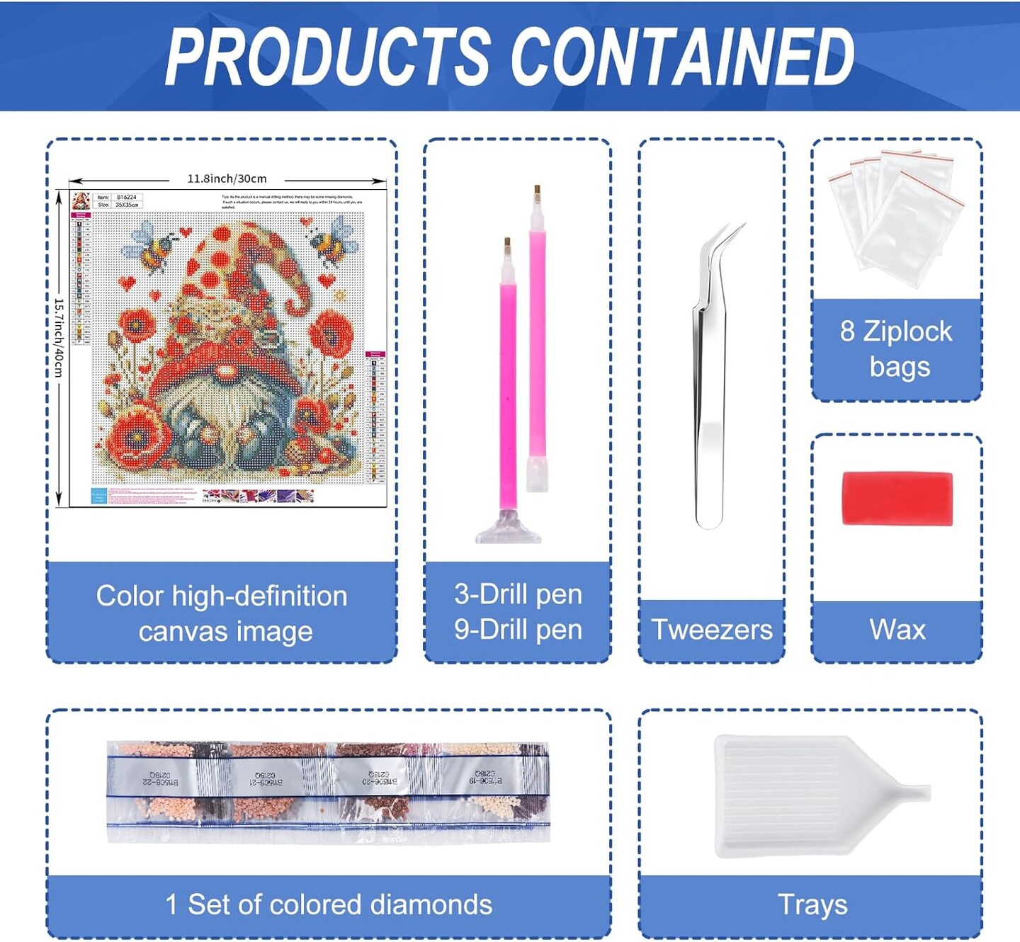 Diamond Art Kits for Adults Gnomes, 5D Gnome Diamond Painting Kits
