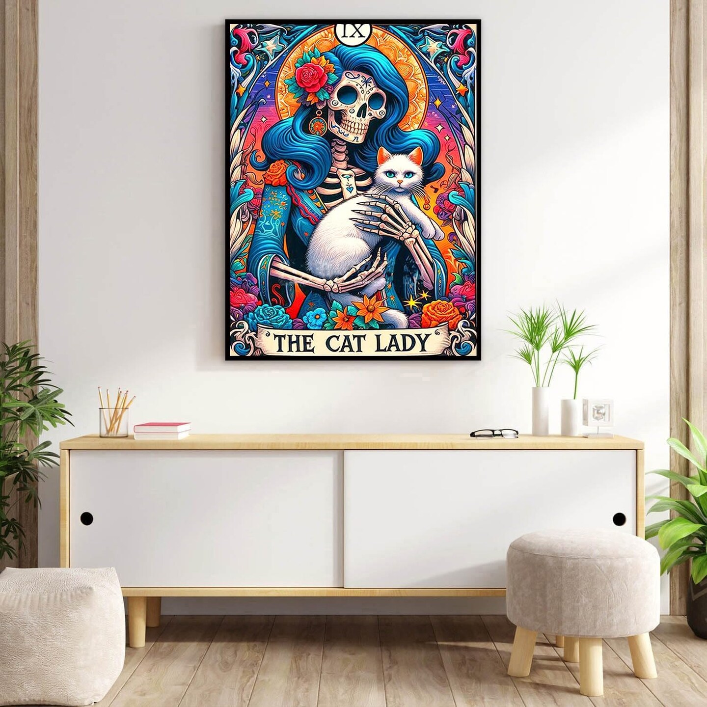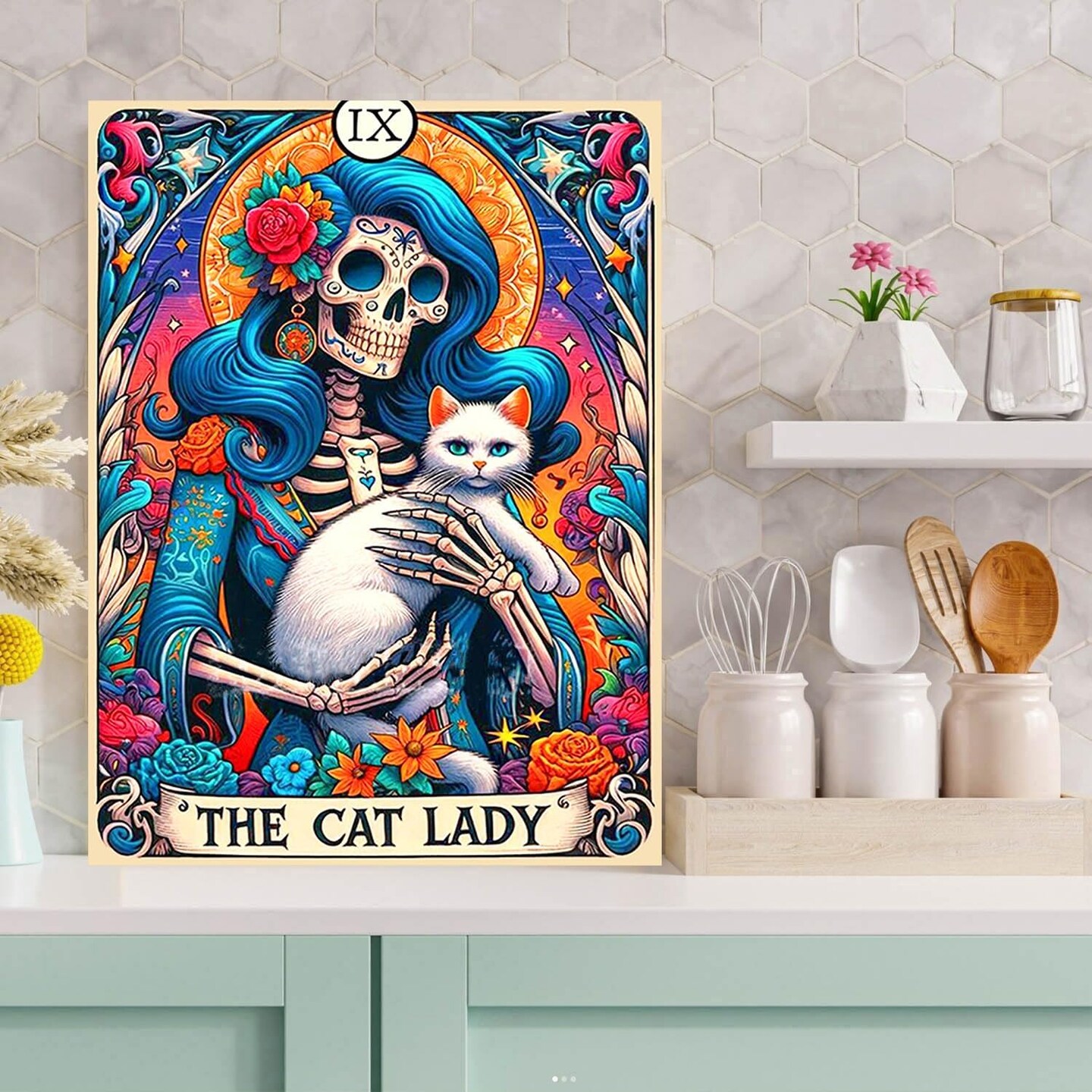 Diamond Art Kits for Adults – Horror Skull & Cat 5D Full Drill Diamond Painting, Gothic Gem Art DIY, 12 x 16 Inch