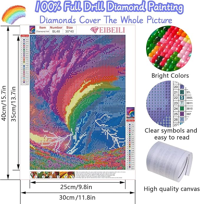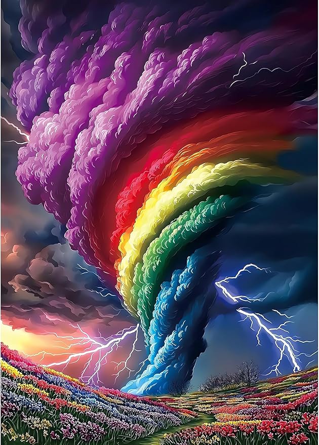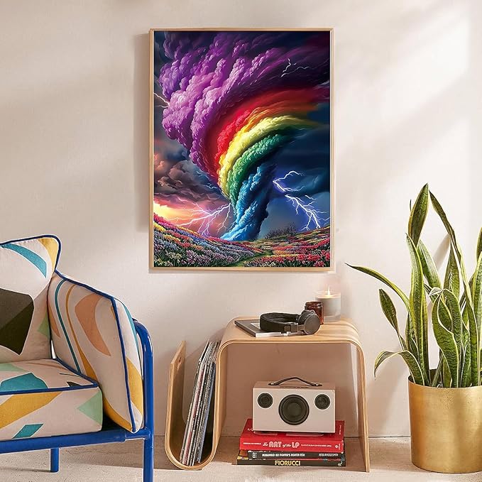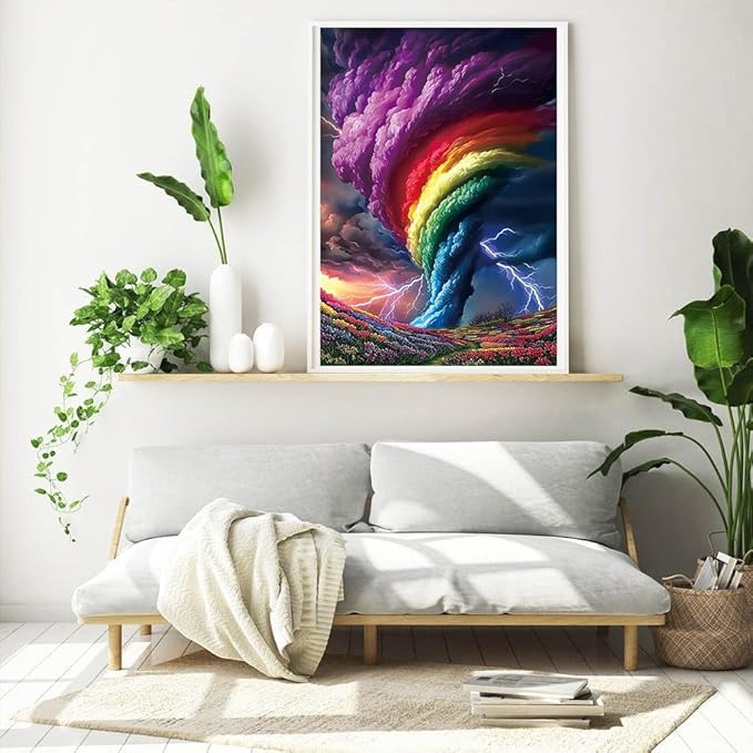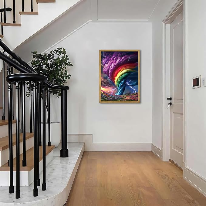 Diamond Art Kits for Adults, Rainbow Storm Diamond Painting Kits for Beginner Round 5D Full Drill Diamond Dots Crafts for Home Wall Decor Gifts 12x16 Inch