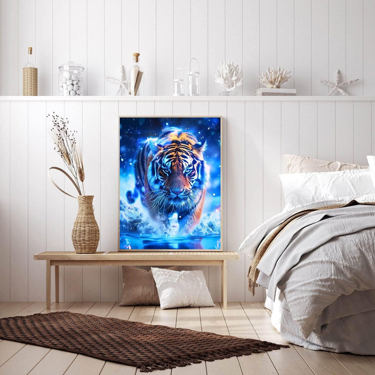 Diamond Art Kits for Adults, Tiger Diamond Painting Kit for Beginners, DIY 5d Full Drill Round Diamond Art Kit for Home Wall Decor Gift 12x16inch